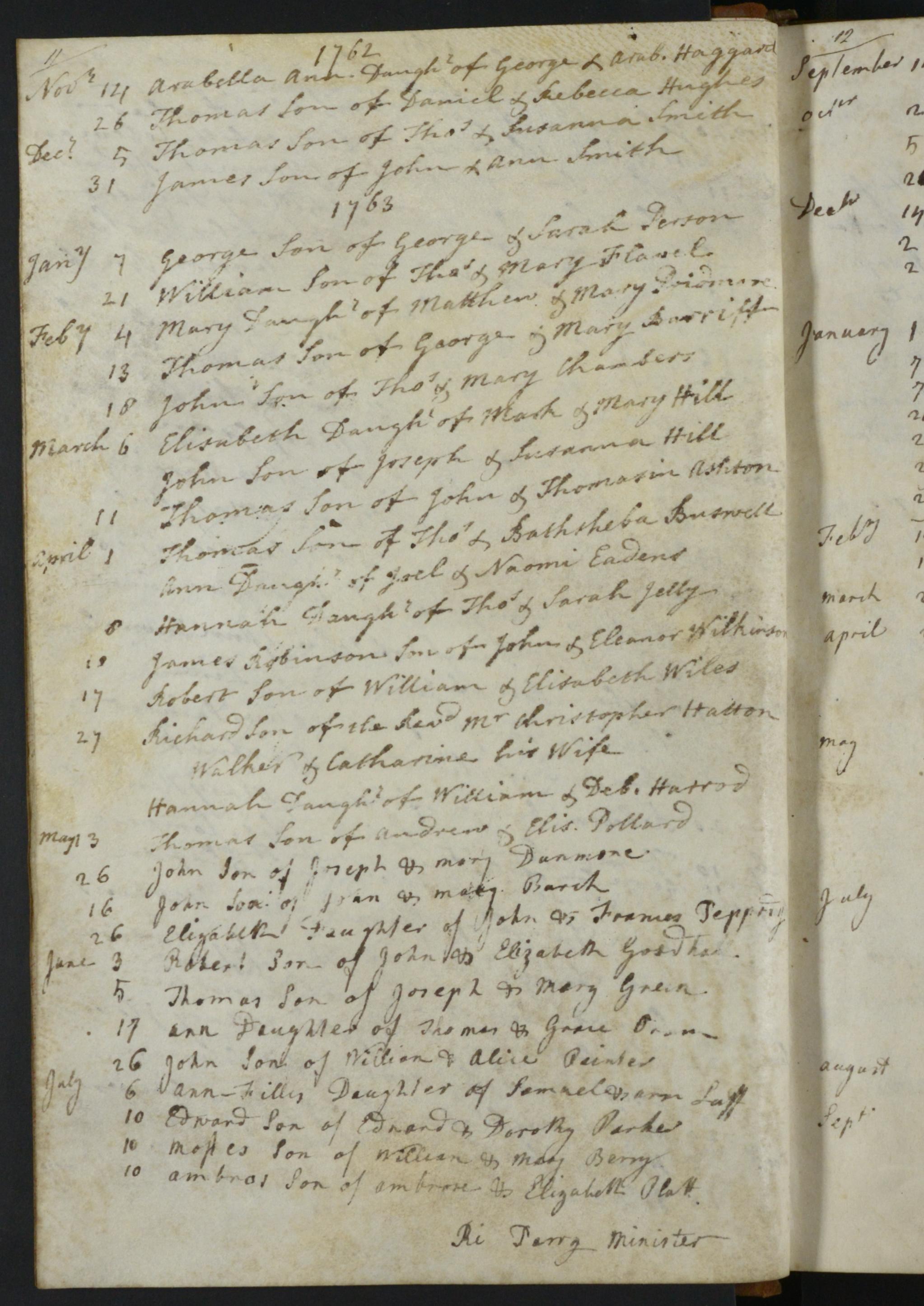 Parish Registers of St Dionysius, Market Harborough, Leicestershire; Baptism entry for John Dunmore, 26 May 1763, Page 11.