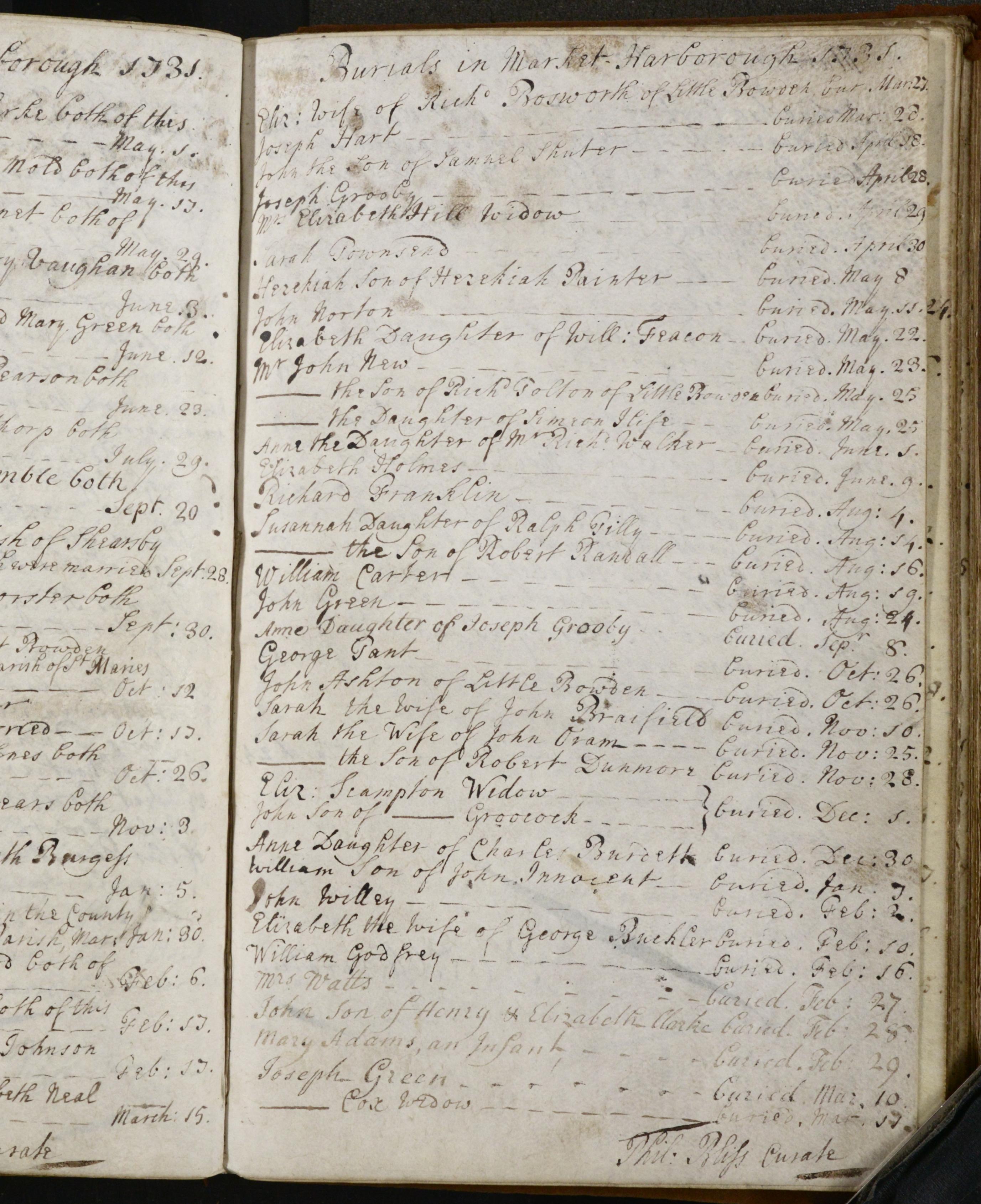 Cited from Parish Registers of St Dionysius, Market Harborough, Leicestershire (Church of England)