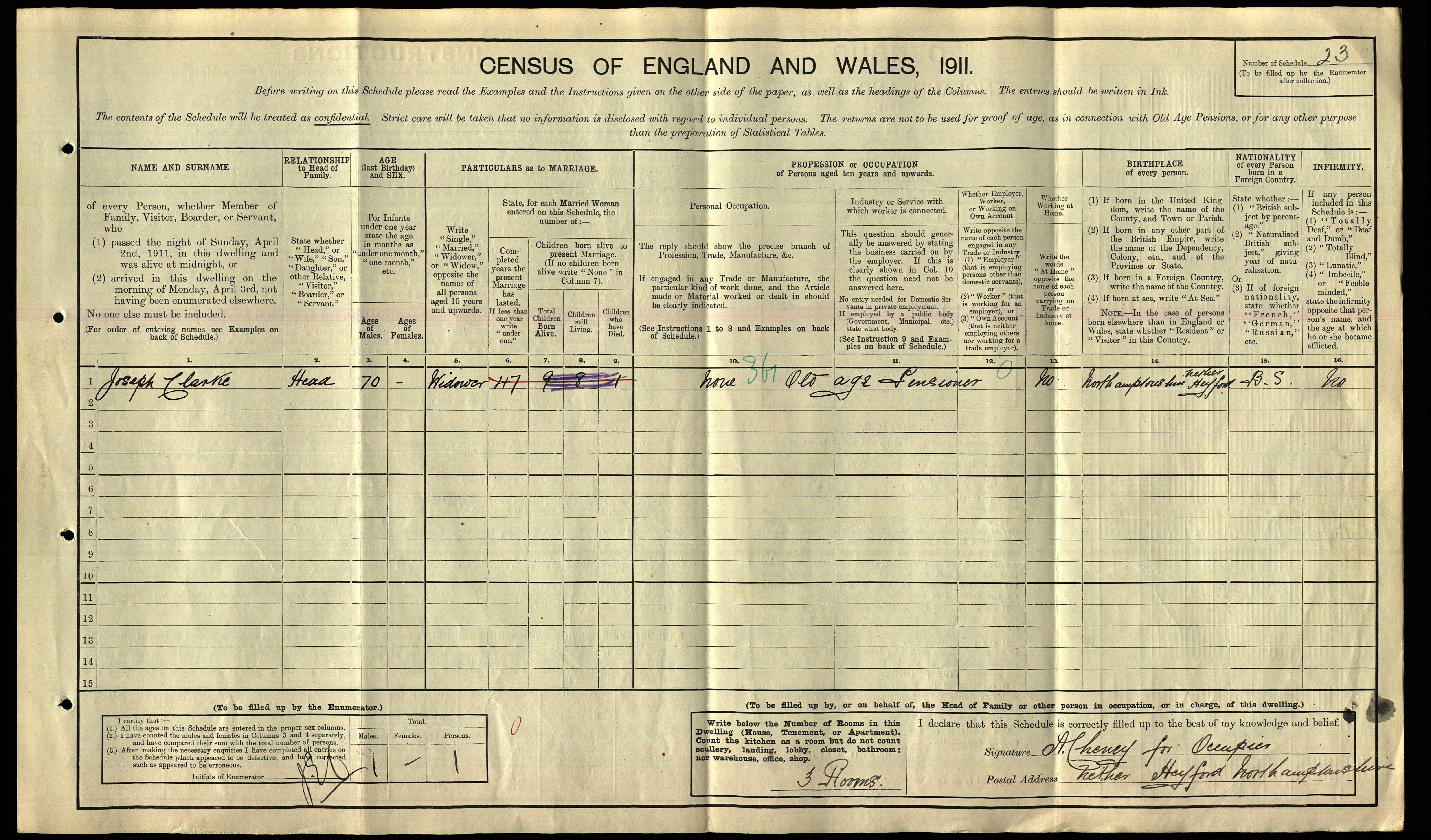- Joseph Clarke★ had economic status Old age pensioner on 2 Apr, 1911
