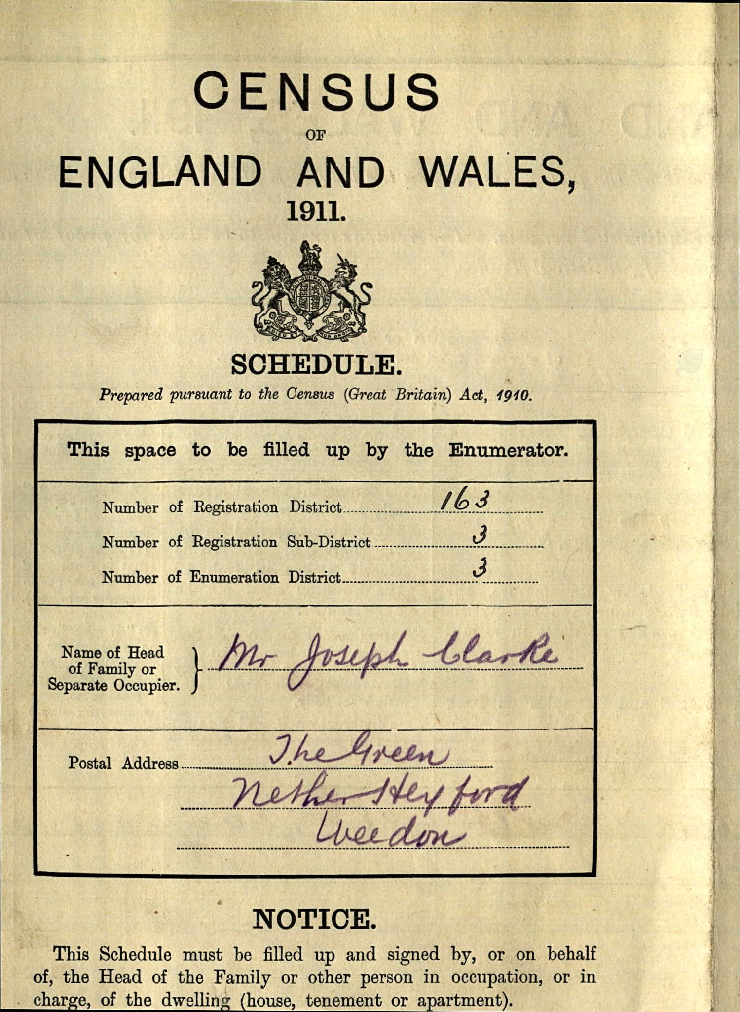 - was recorded in the census on 2 Apr, 1911 at The Green, Nether Heyford, Northamptonshire, England