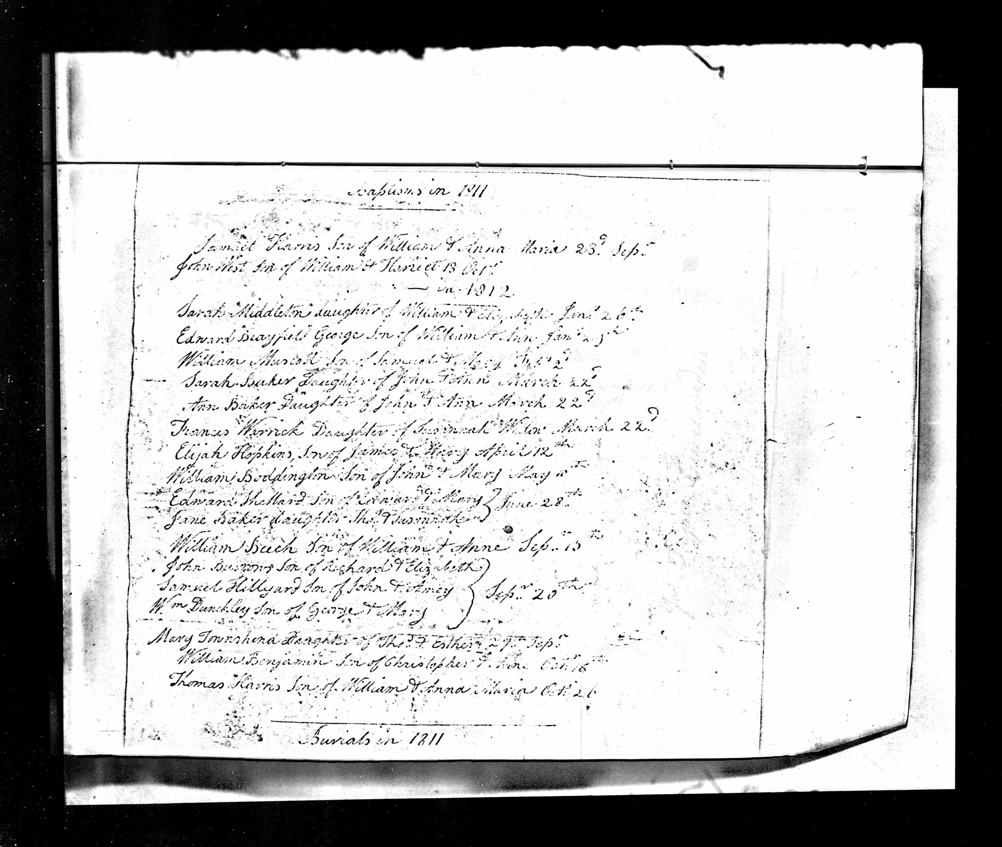 Bishop's Transcripts for the Diocese of Peterborough, England; Baptism entry for Mary Townshend, Gayton, 27 Sep 1812.