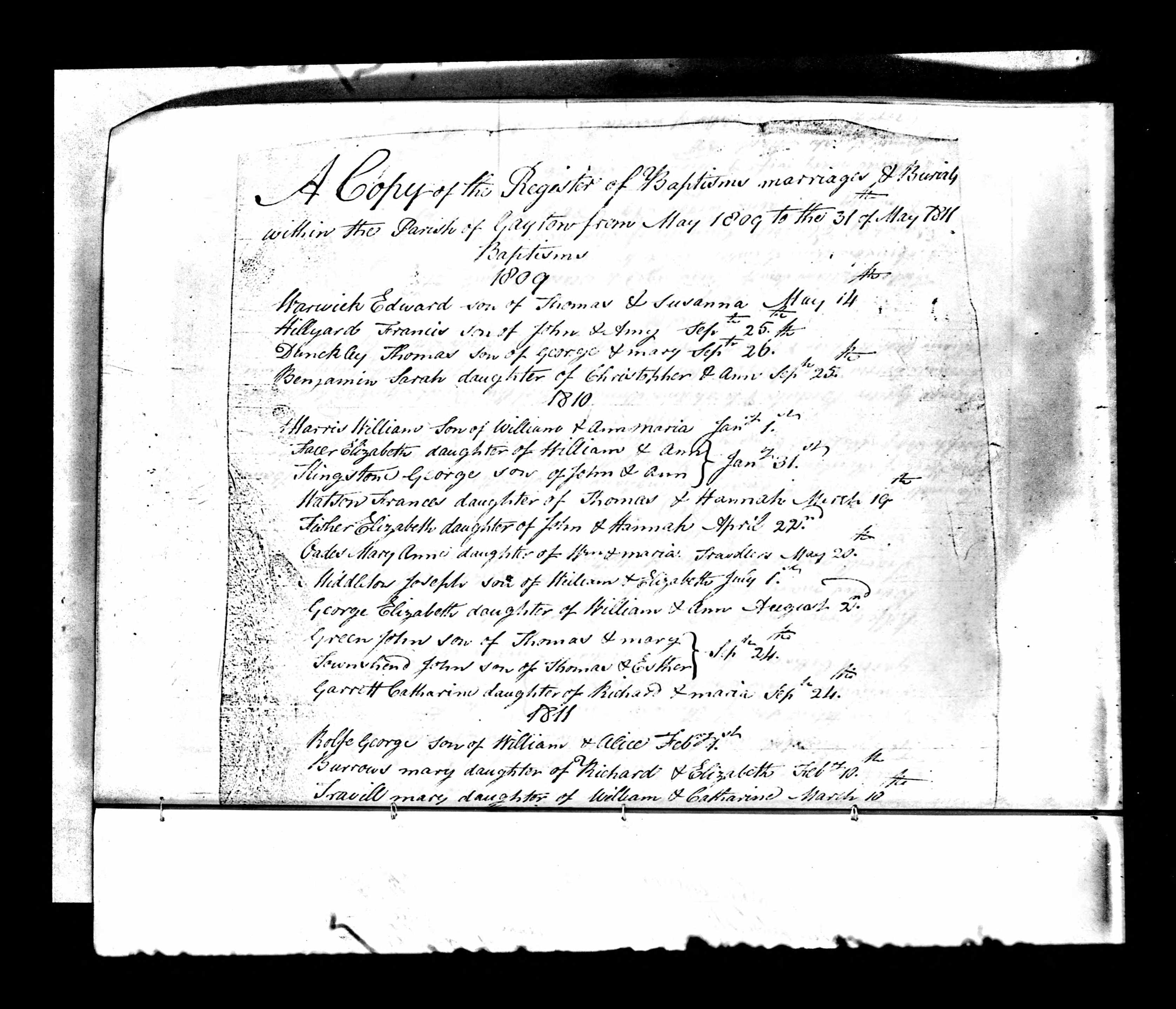 - John Townsend was baptised on 24 Sep, 1810 at St. Nicholas Church, Gayton, Northamptonshire, England