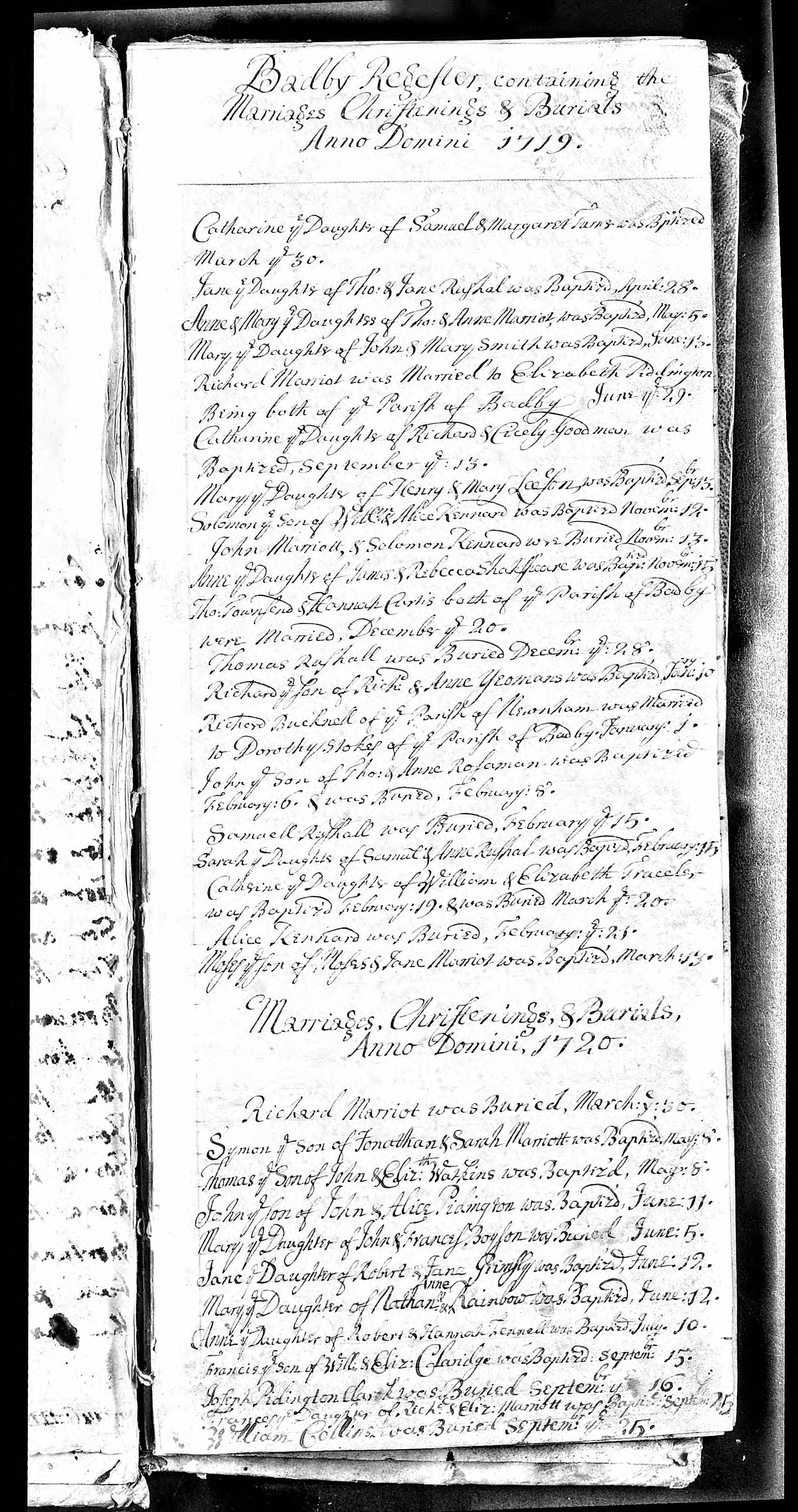 Cited from Parish Registers of St. Mary the Virgin, Badby, Northamptonshire (Church of England)
