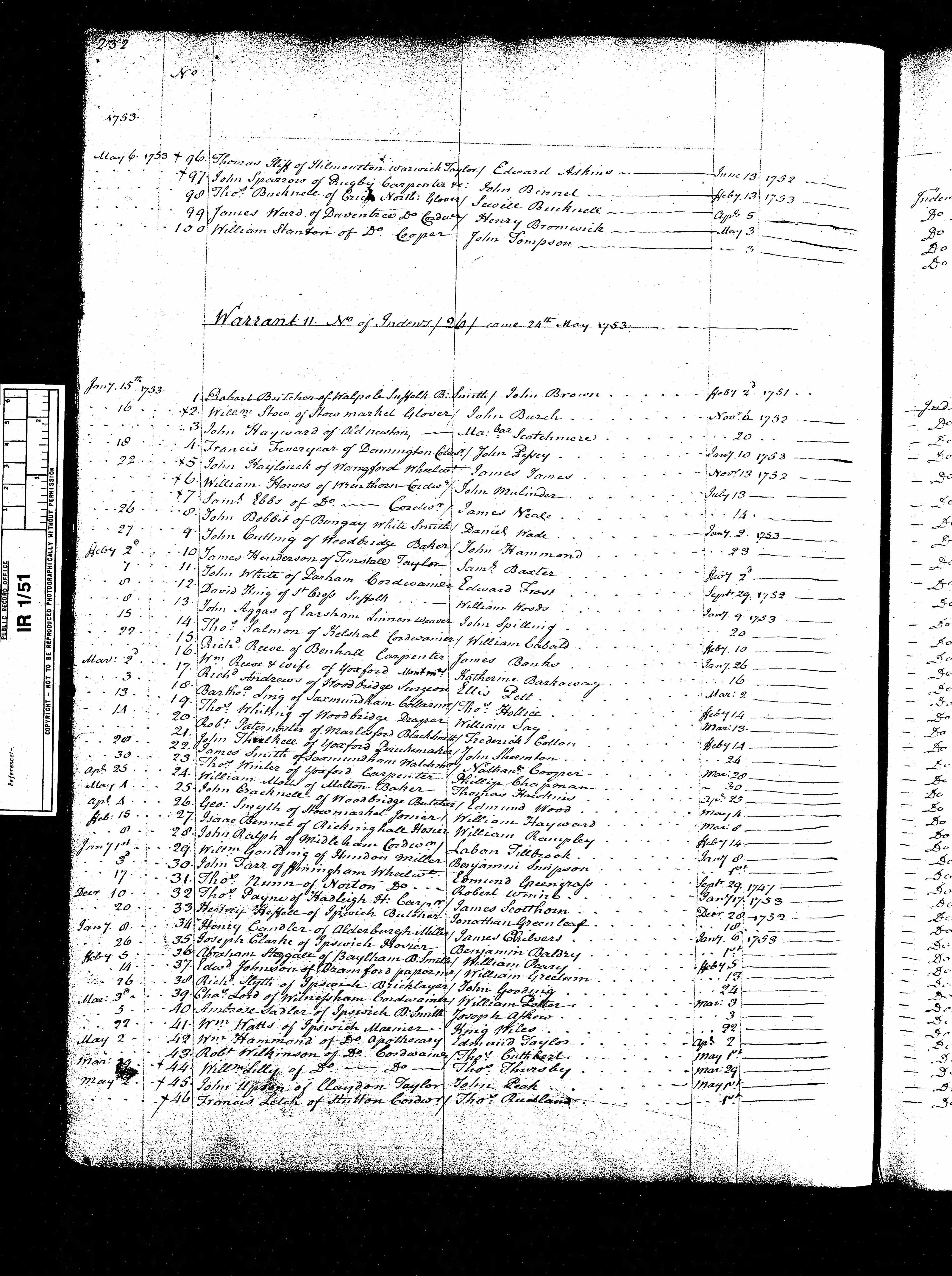 Board of Stamps: Apprenticeship Books; IR 1; Apprenticehip indenture for Thomas Bucknell and Sewell Bucknell, 6 May 1753, Page 232, No 98.
