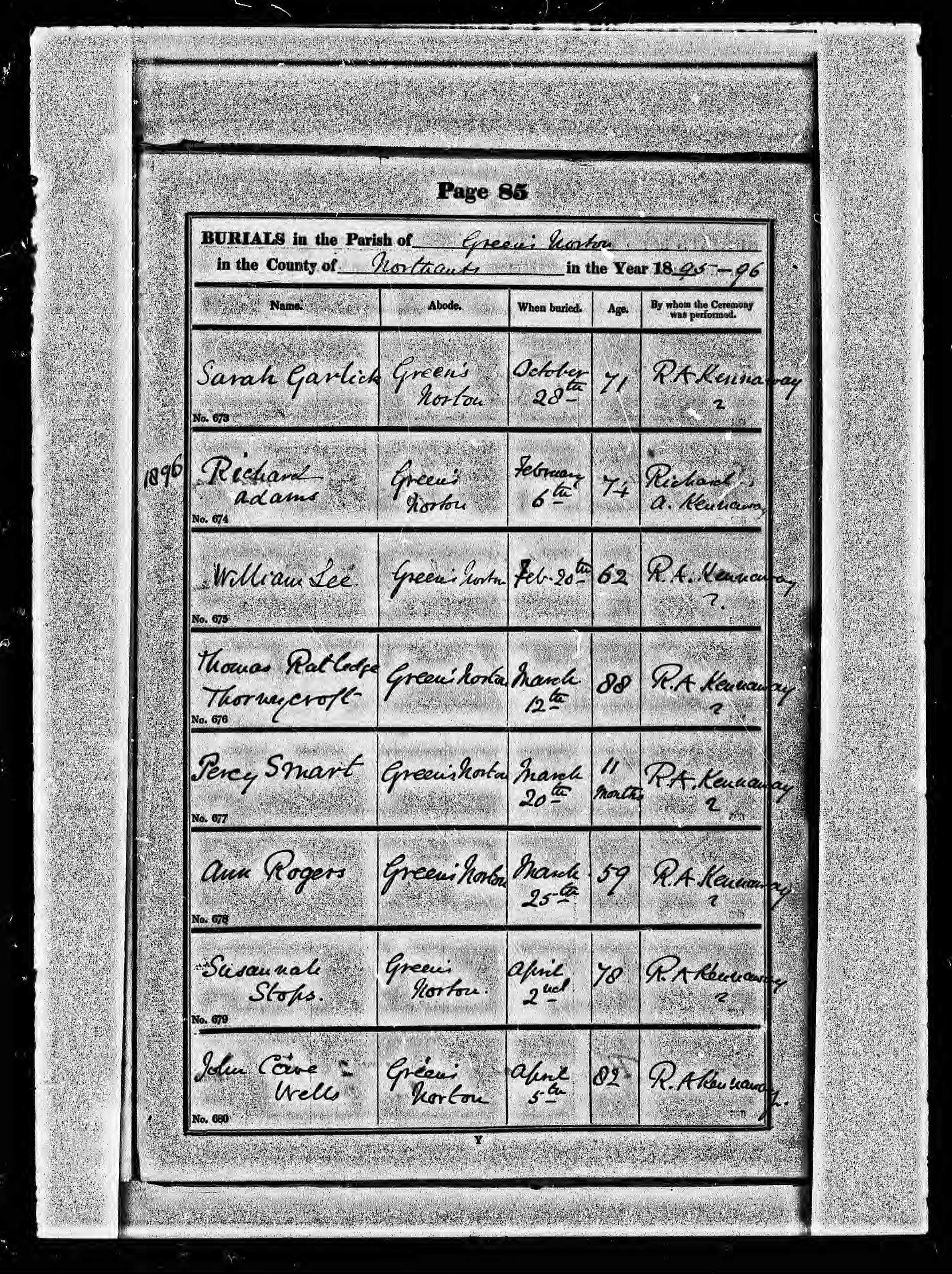 - Ann Garlick★ was buried on 25 Mar, 1896 at St. Bartholomews Church, Greens Norton, Northamptonshire, England