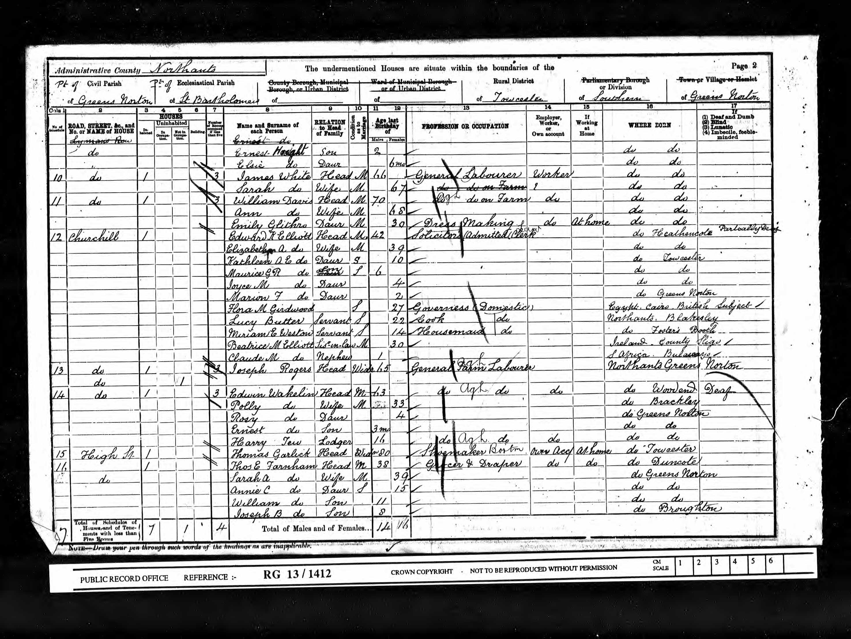 - was recorded in the census on 31 Mar, 1901 at Church Hill, Greens Norton, Northamptonshire, England