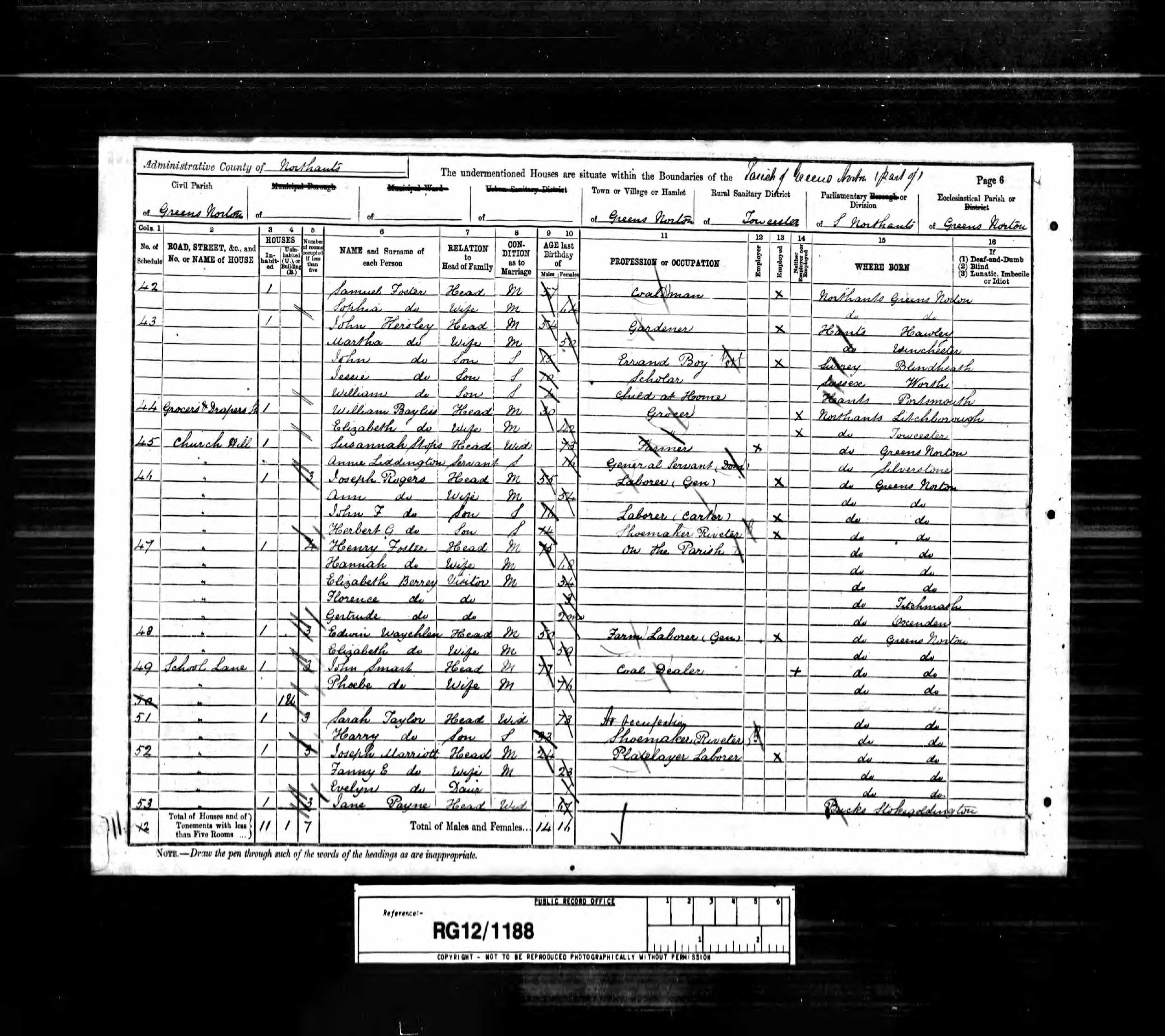 - was recorded in the census on 5 Apr, 1891 at Church Hill, Greens Norton, Northamptonshire, England