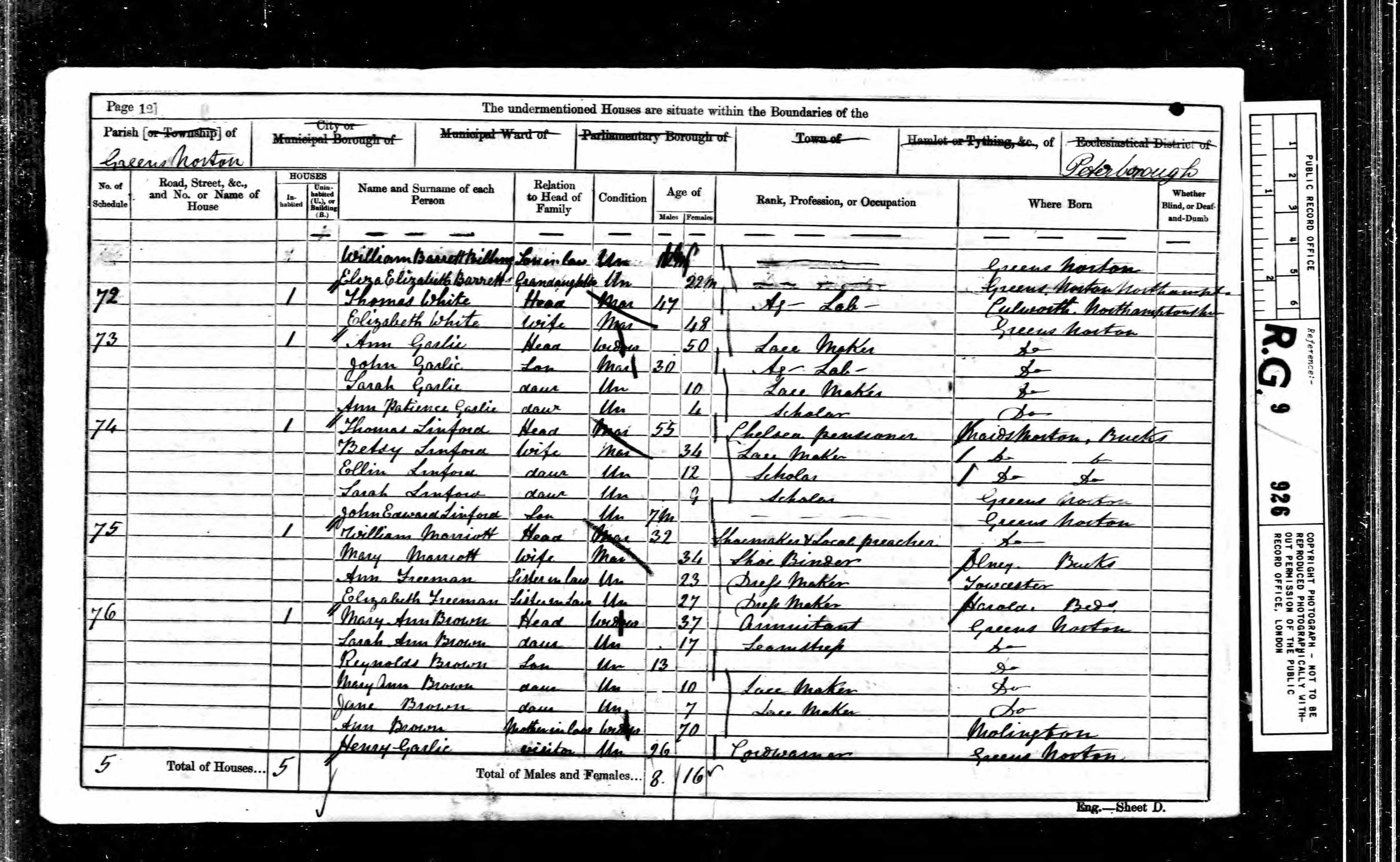 Class RG9, Piece 926, Folio 9, Page 12, Schedule 73