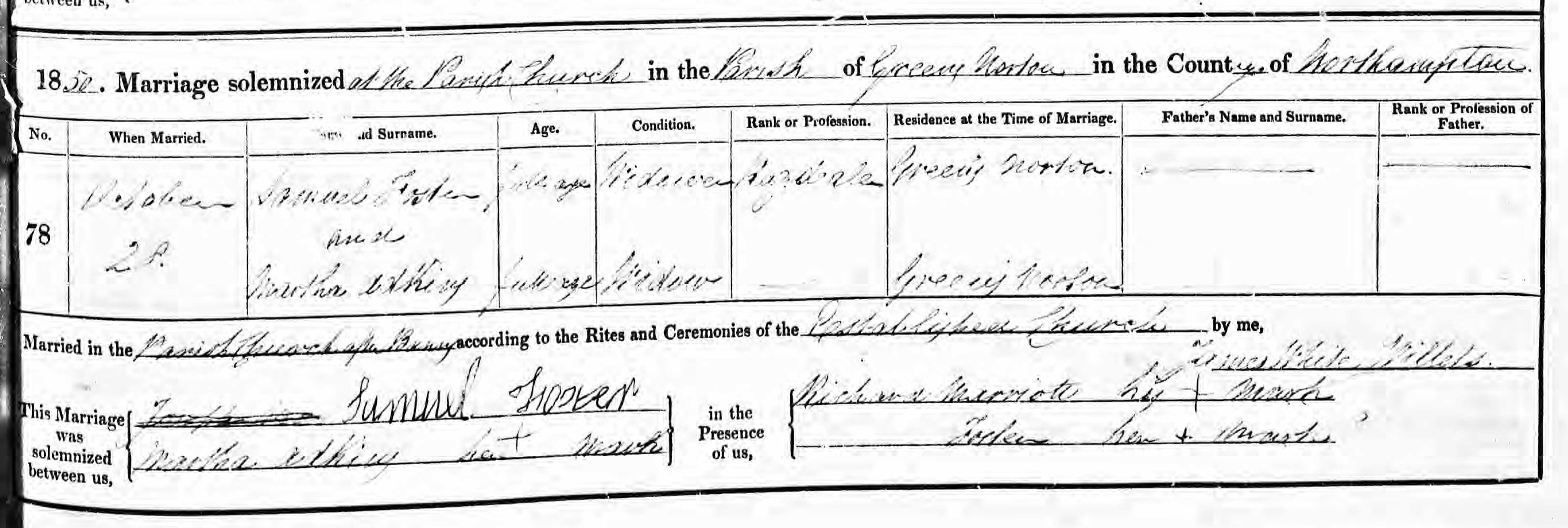 MarriageOfSamuelFosterAndMarthaAdkins1850GreensNorton