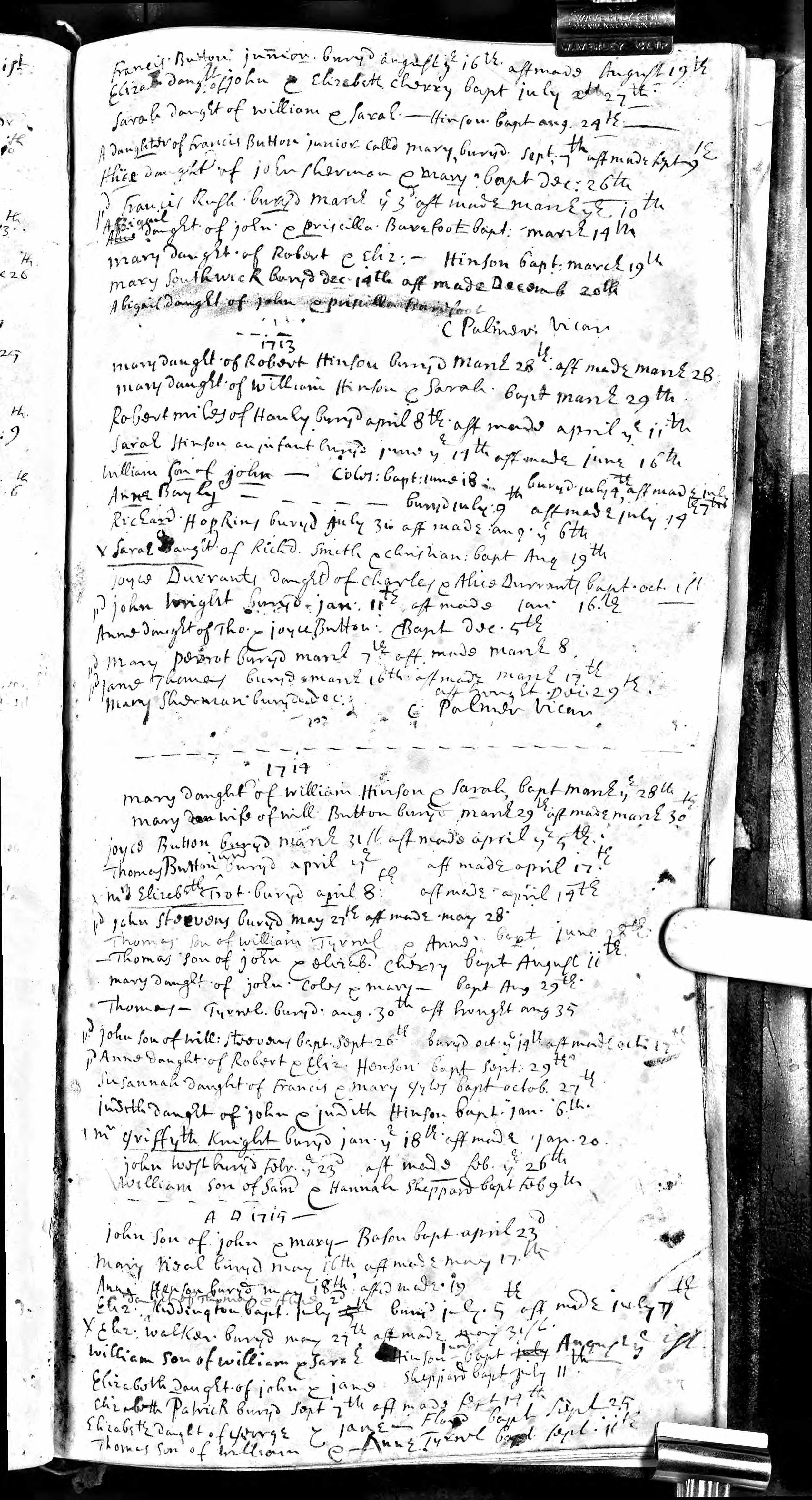 Baptism entry for William Hinson, 1 Aug 1715