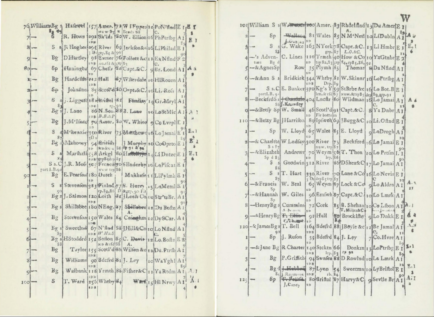 Cited from Lloyds Register of Shipping 1792 (Lloyds of London)