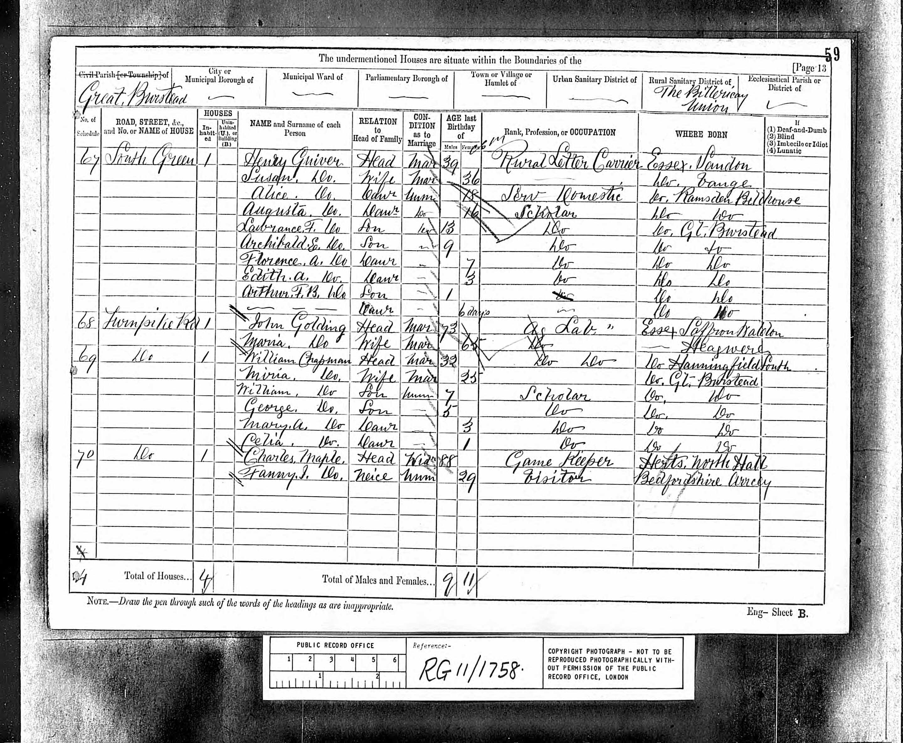 Class RG11, Piece 1758, Folio 59, Page 13, Schedule 67