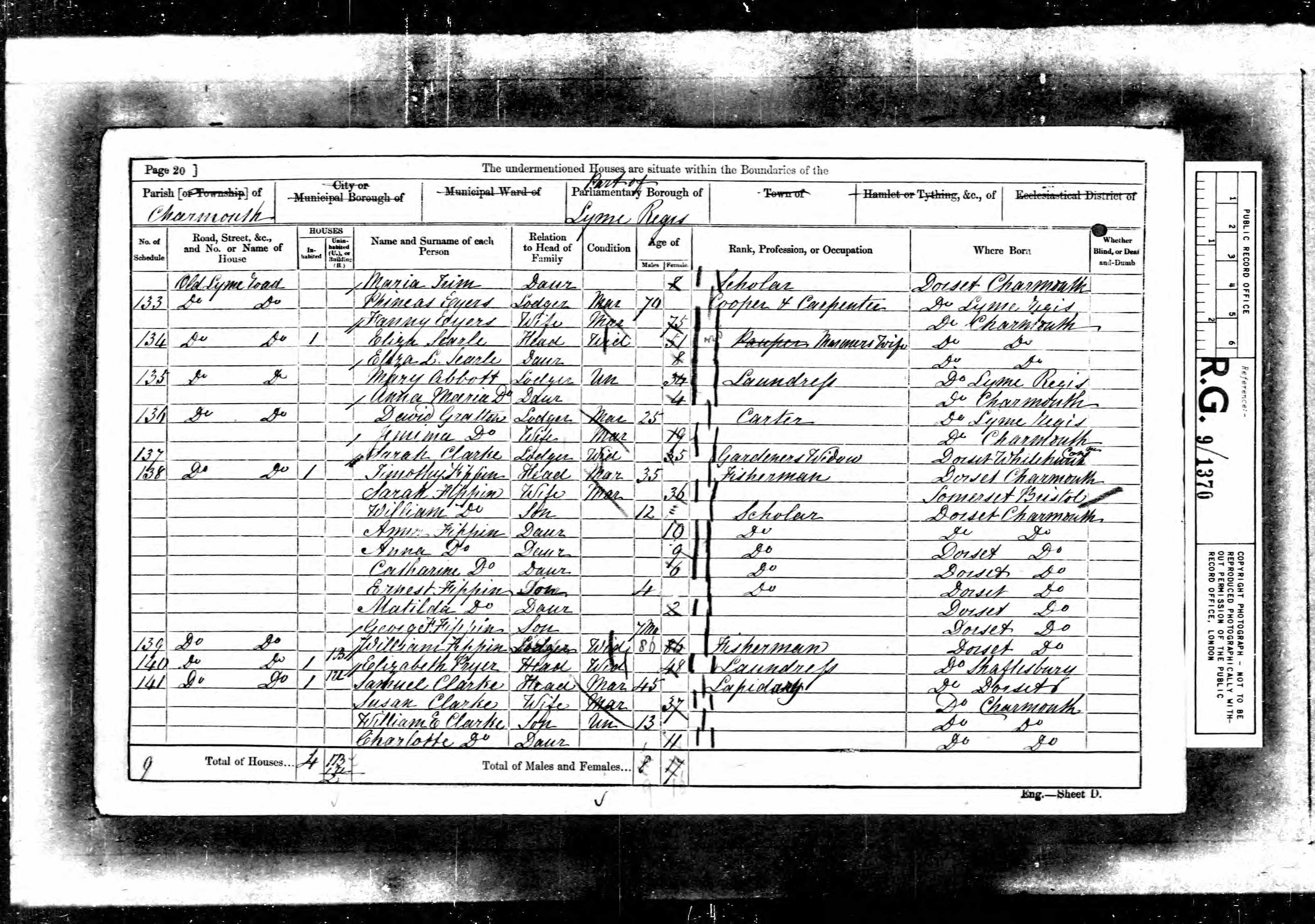- was recorded in the census on 7 Apr, 1861 at Old Lyme Road, Charmouth, Dorset, England