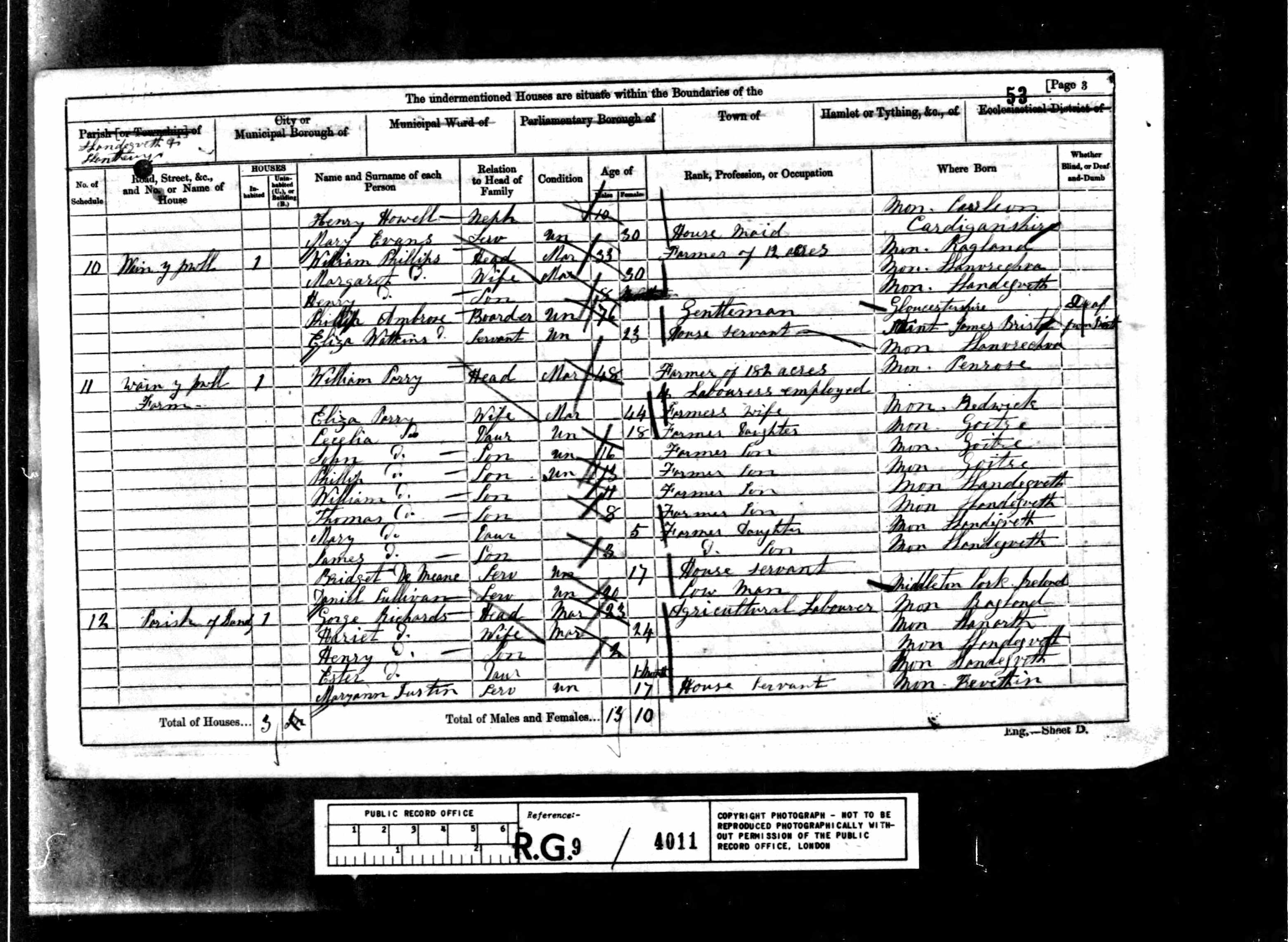 - was recorded in the census on 7 Apr, 1861 at Wain y pwyl farm, Llandegveth, Monmouthshire, Wales