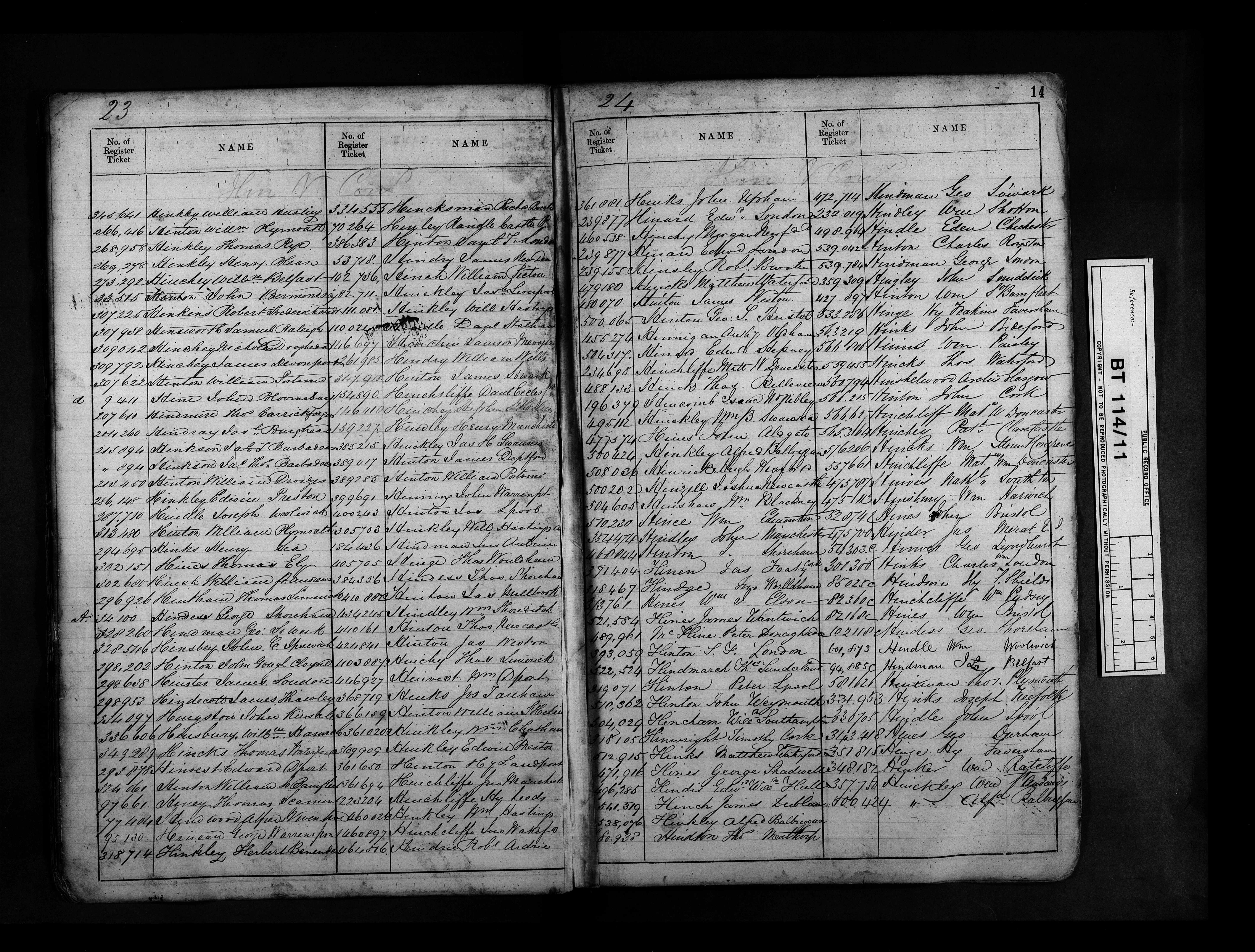 Registry of Shipping and Seamen: Alphabetical Index to Registers of Seamen's Tickets; Class RG114, Piece 11, Page 23.