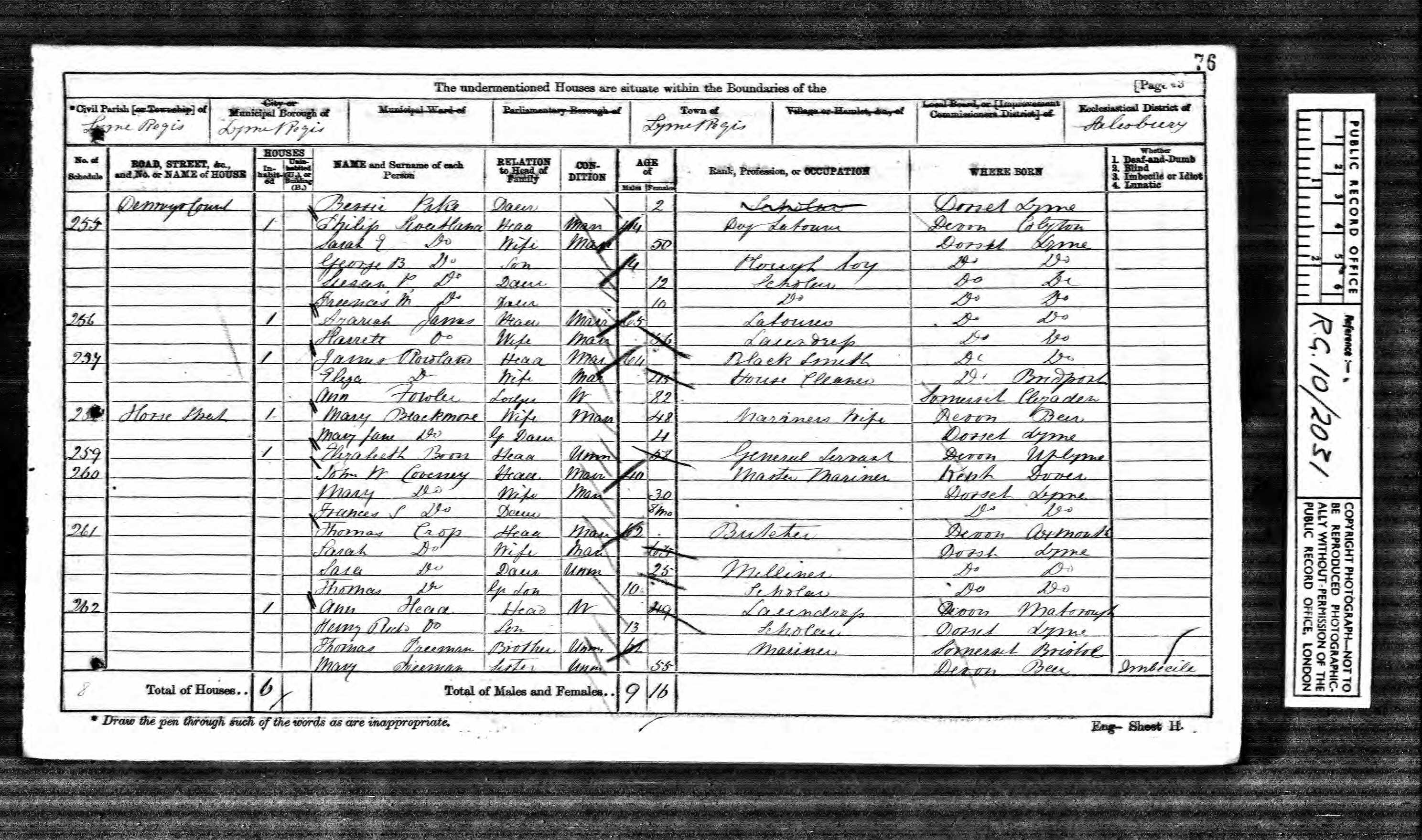 - was recorded in the census on 2 Apr, 1871 at Denning's Court, Lyme Regis, Dorset, England