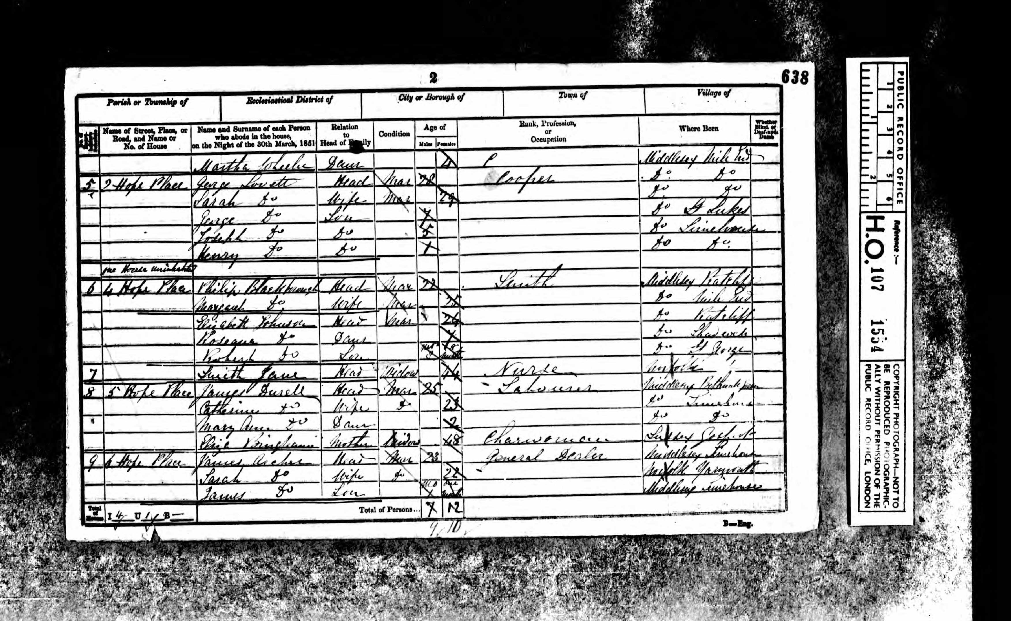 1851 England and Wales Census; Class HO107, Piece 1554, Folio 638, Page 2, Schedile 6.