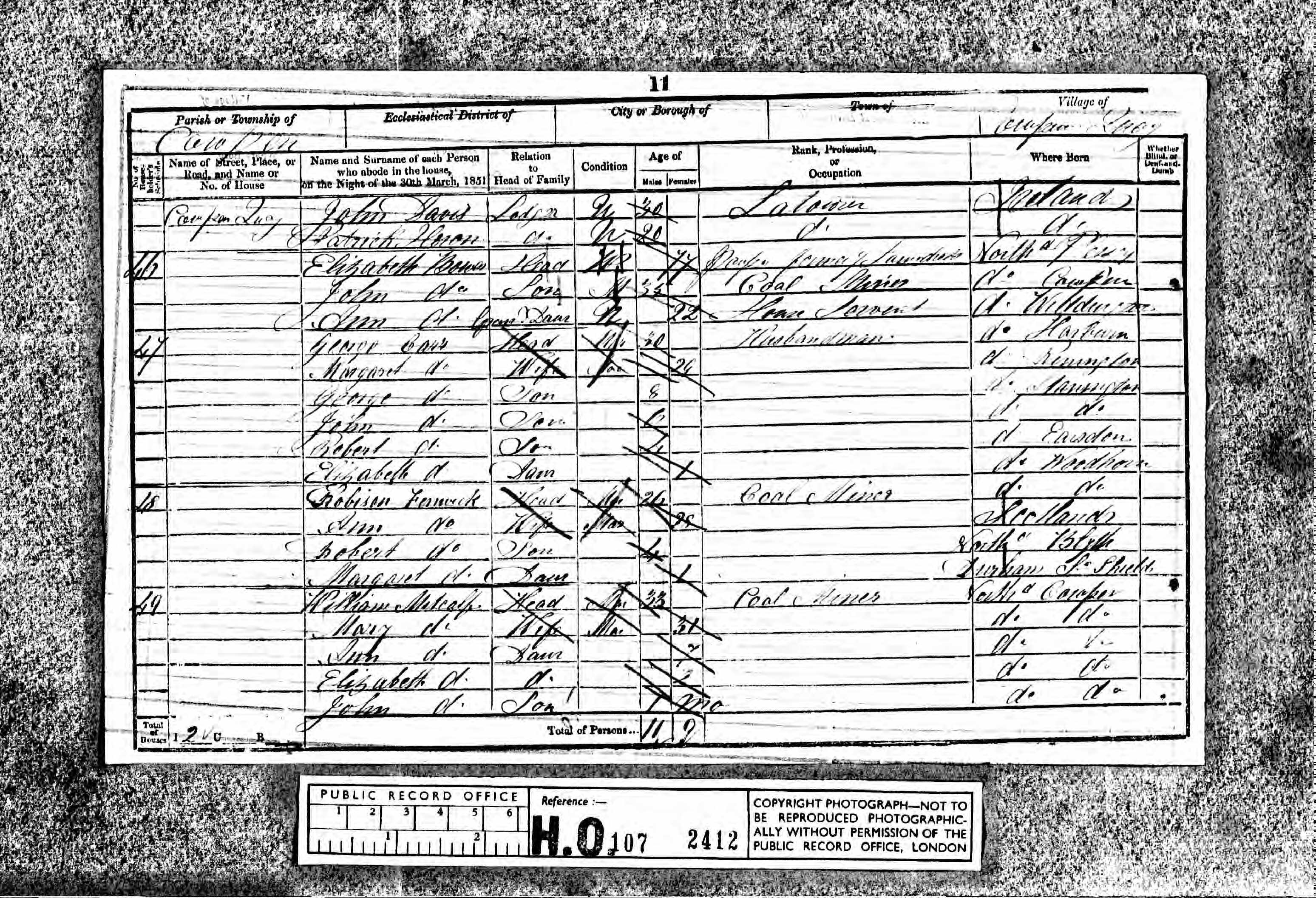 1851 England and Wales Census; Class HO107, Piiece 2412, Folio 355, Page 11, Schedule 47.