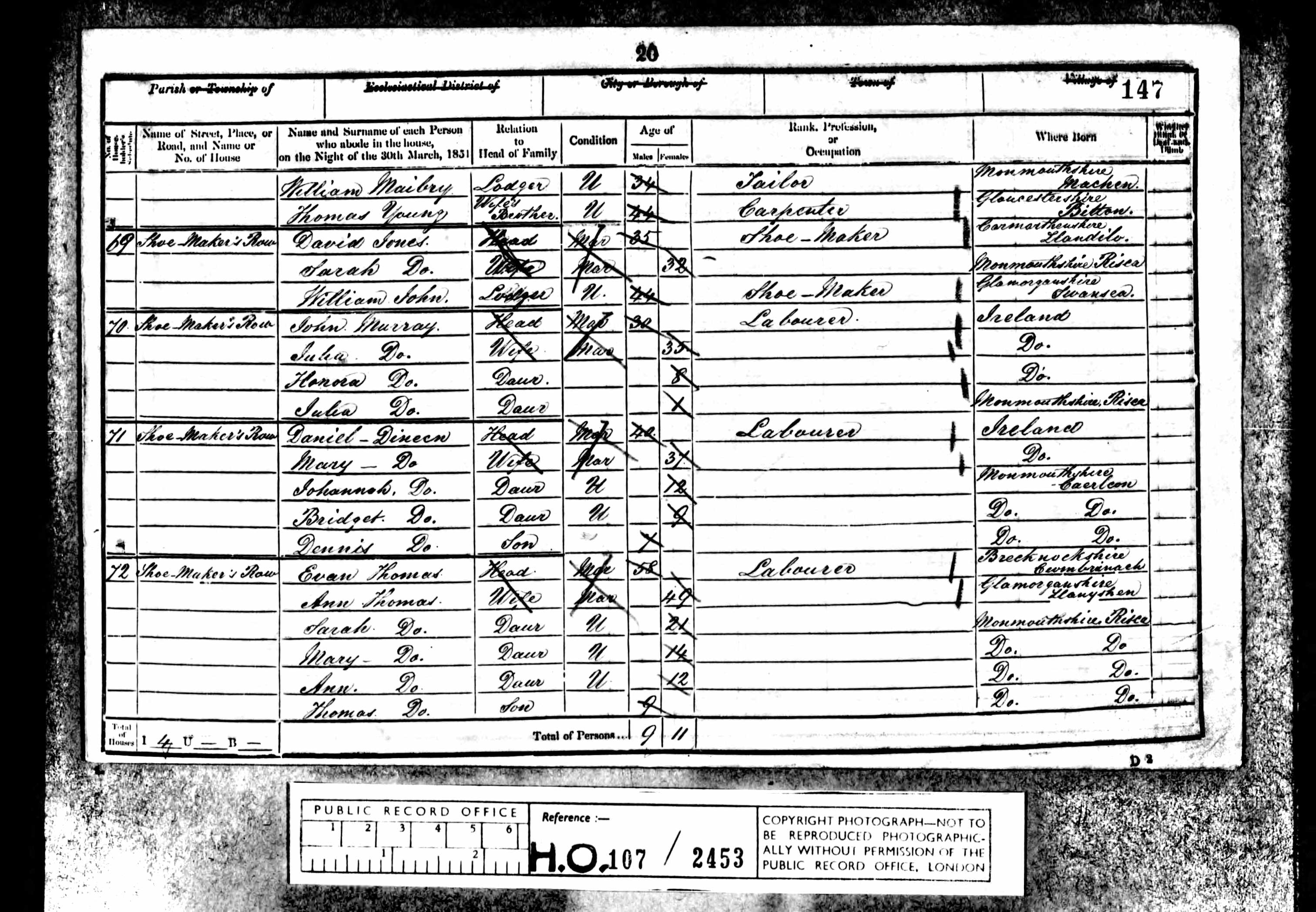 - was recorded in the census on 30 Mar, 1851 at Shoemaker's Row, Risca, Monmouthshire, Wales