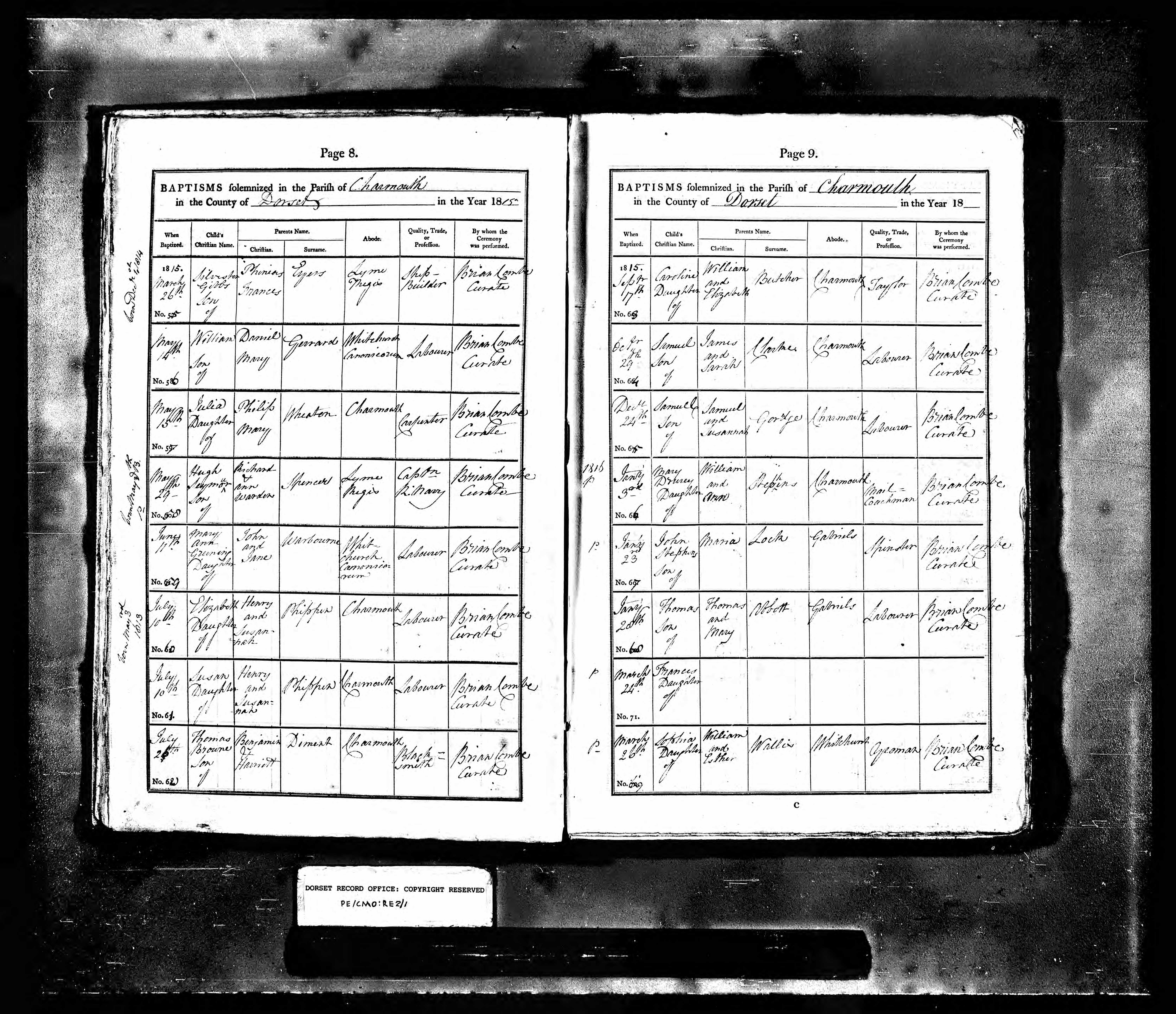 Cited from Parish Registers of St. Andrew, Charmouth, Dorset (Church of England)