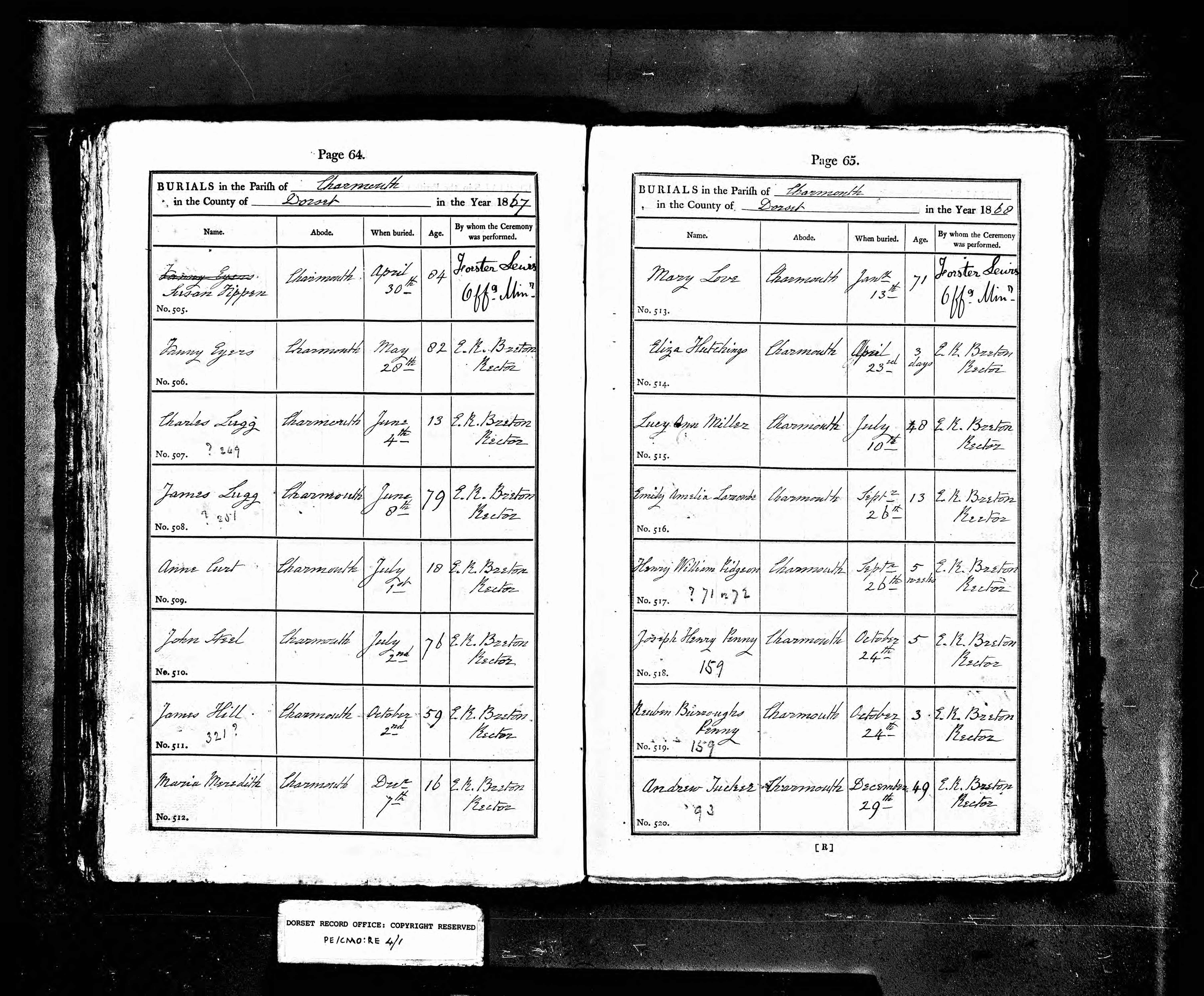 Cited from Parish Registers of St. Andrew, Charmouth, Dorset (Church of England)