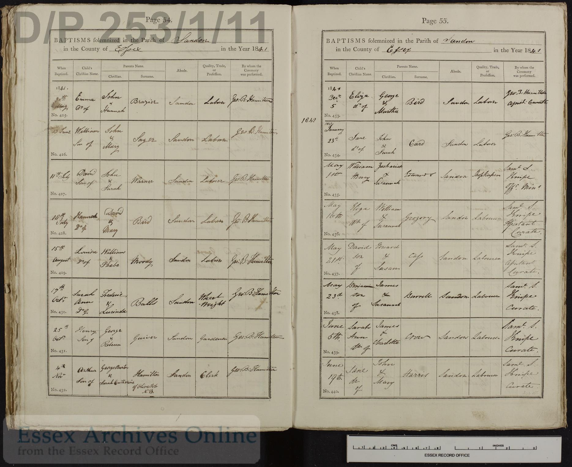 Parish Registers of St. Andrew, Sandon, Essex; Baptism entry for Henry Guiver, 25 Oct 1841, Page 54, No 431.