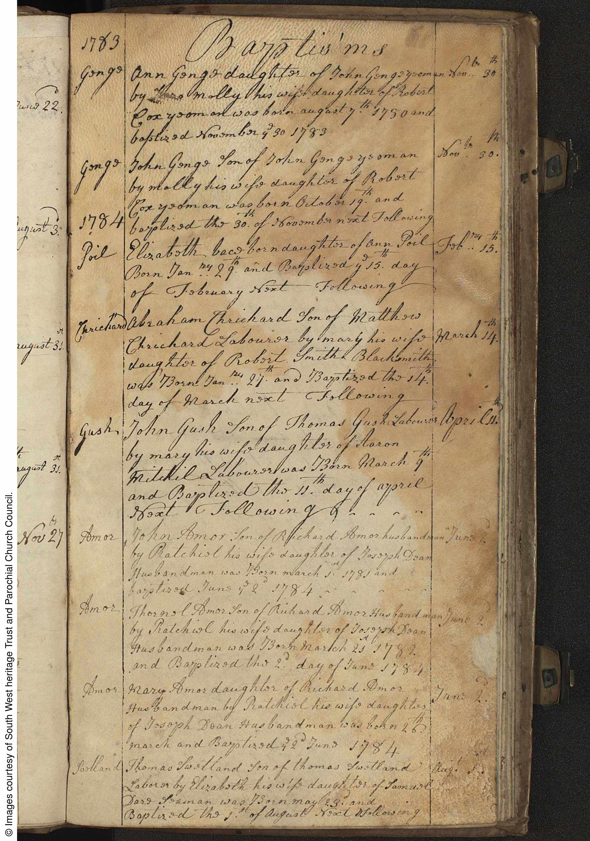 Cited from Parish Registers of St. Michael, Axmouth, Devon (Church of England)
