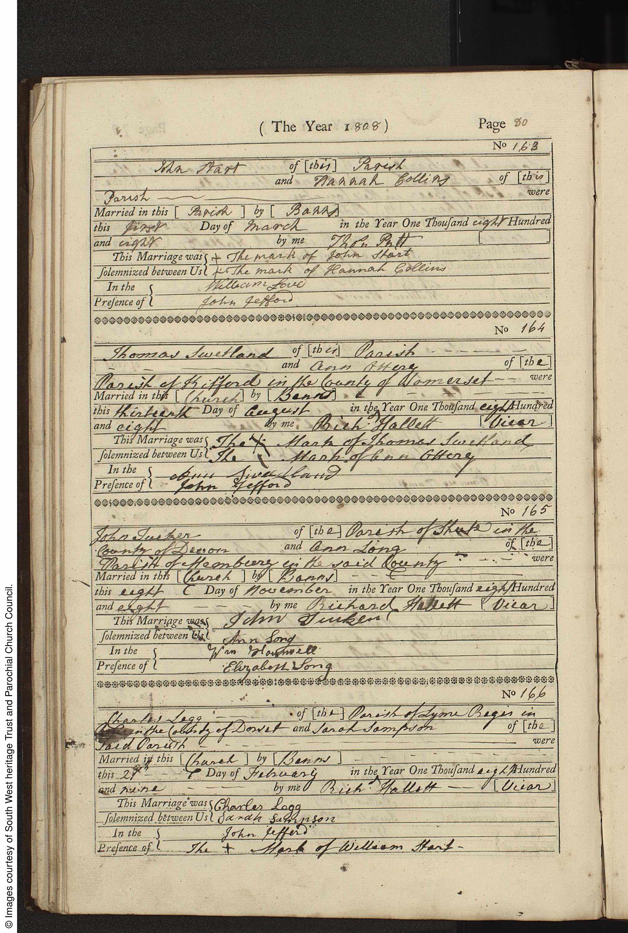 MarriageOfThomasSwetlandAndAnnOttery1808Axmouth