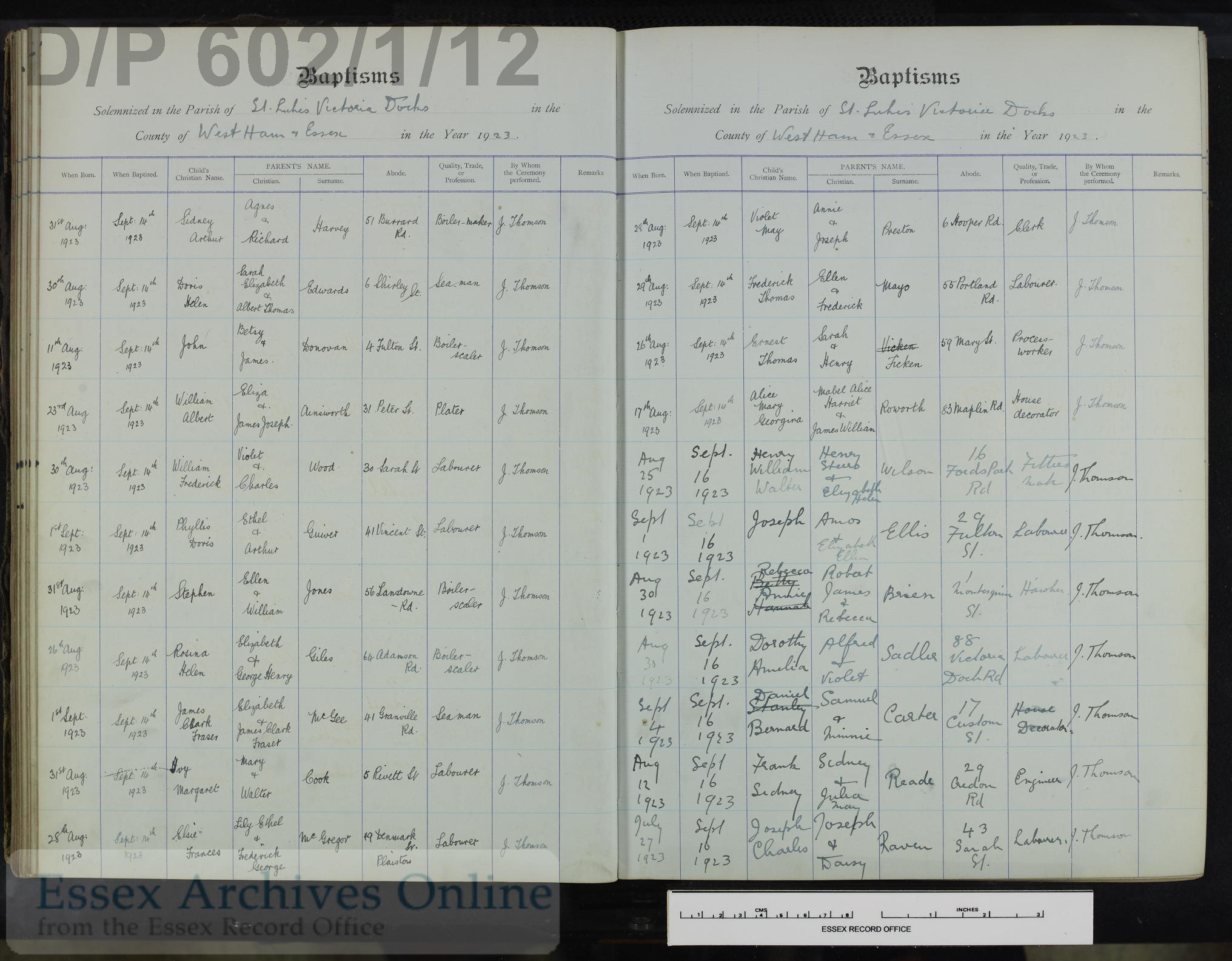 Cited from Parish Registers of St. Luke, Victoria Docks, Essex (Church of England)