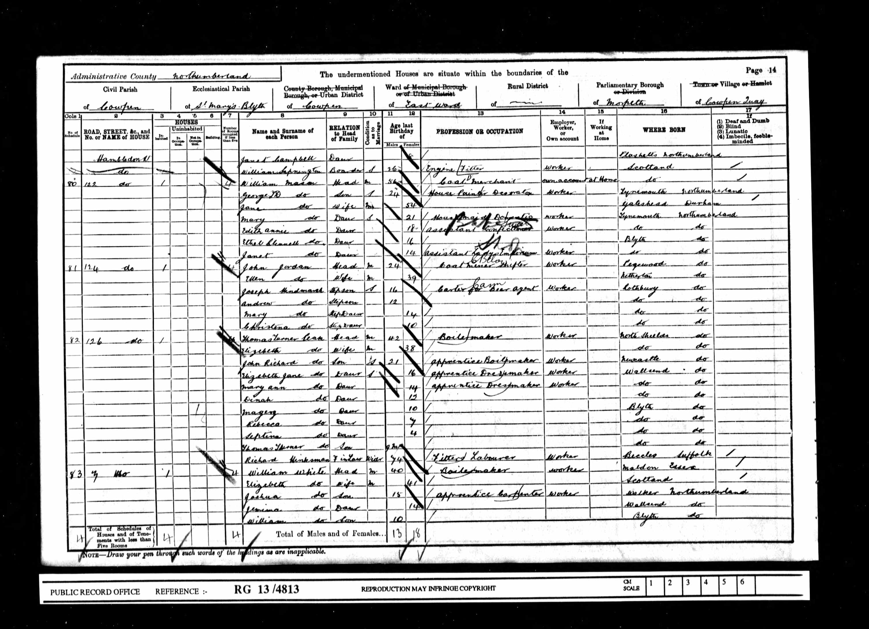 - was recorded in the census on 31 Mar, 1901 at 126 Hambledon Street, Blyth, Northumberland, England