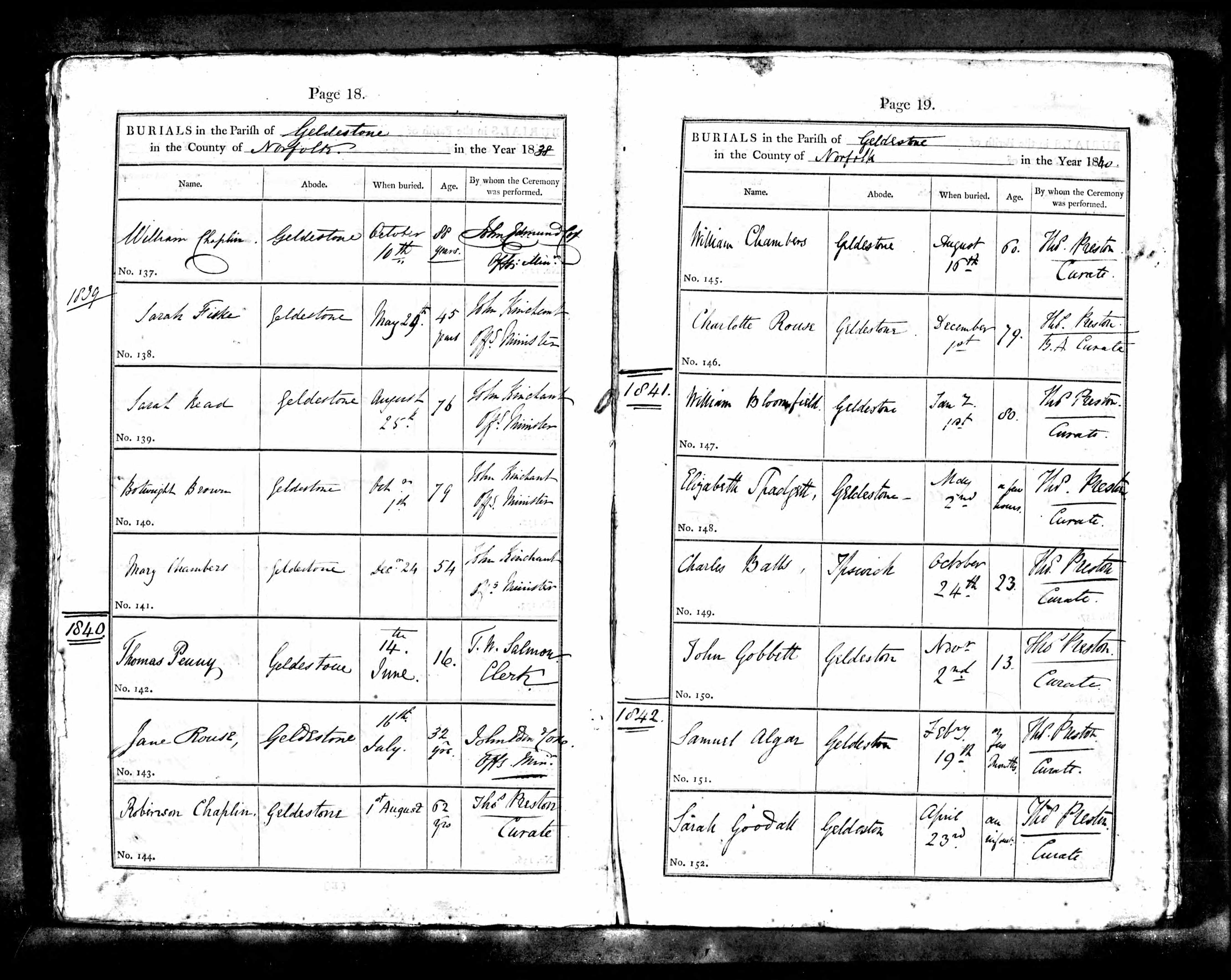 Cited from Parish Registers of St. Michael & All Angels, Geldeston, Norfolk (Church of England)