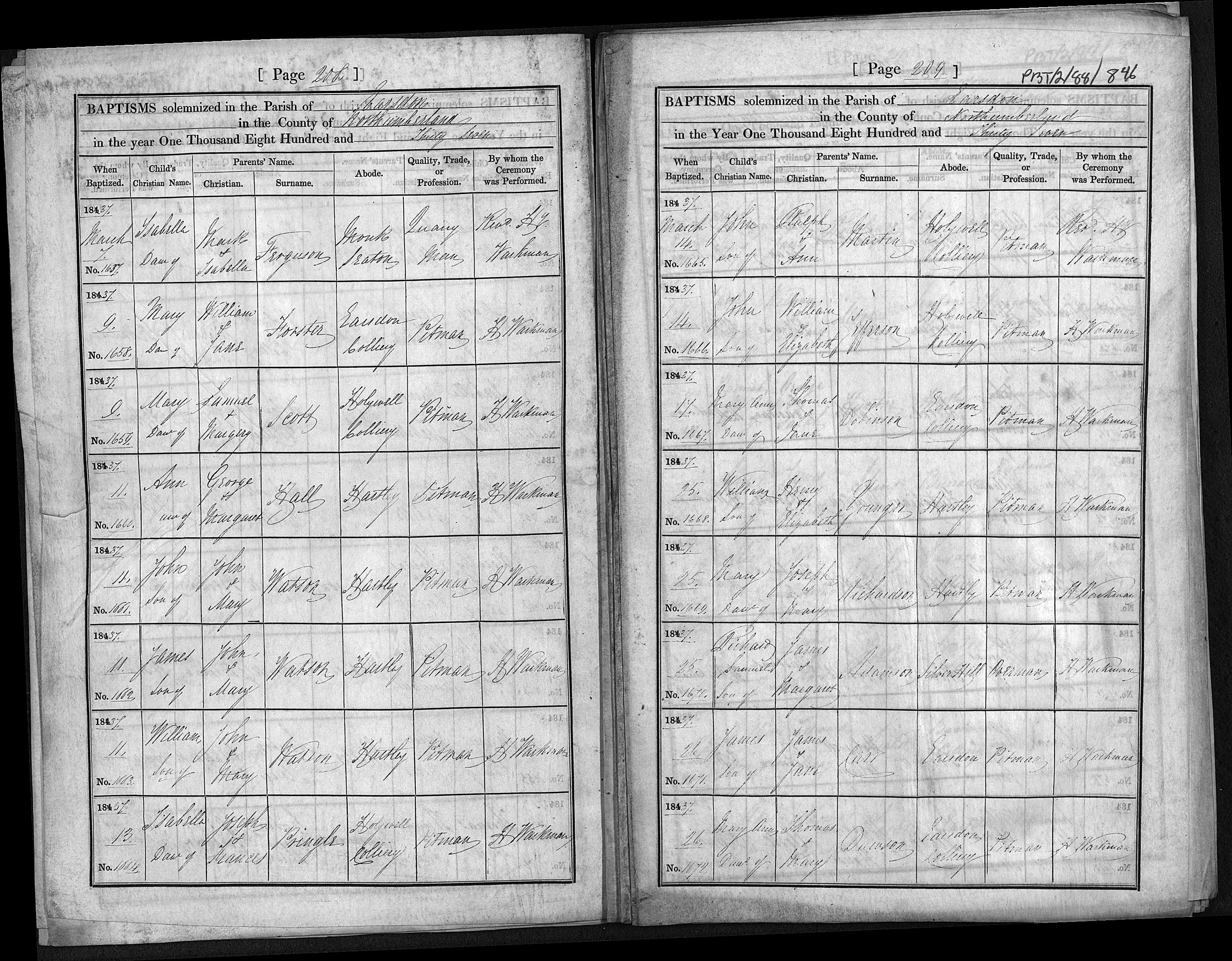- George Hall★ had occupation recorded as pitman on 11 Mar, 1837