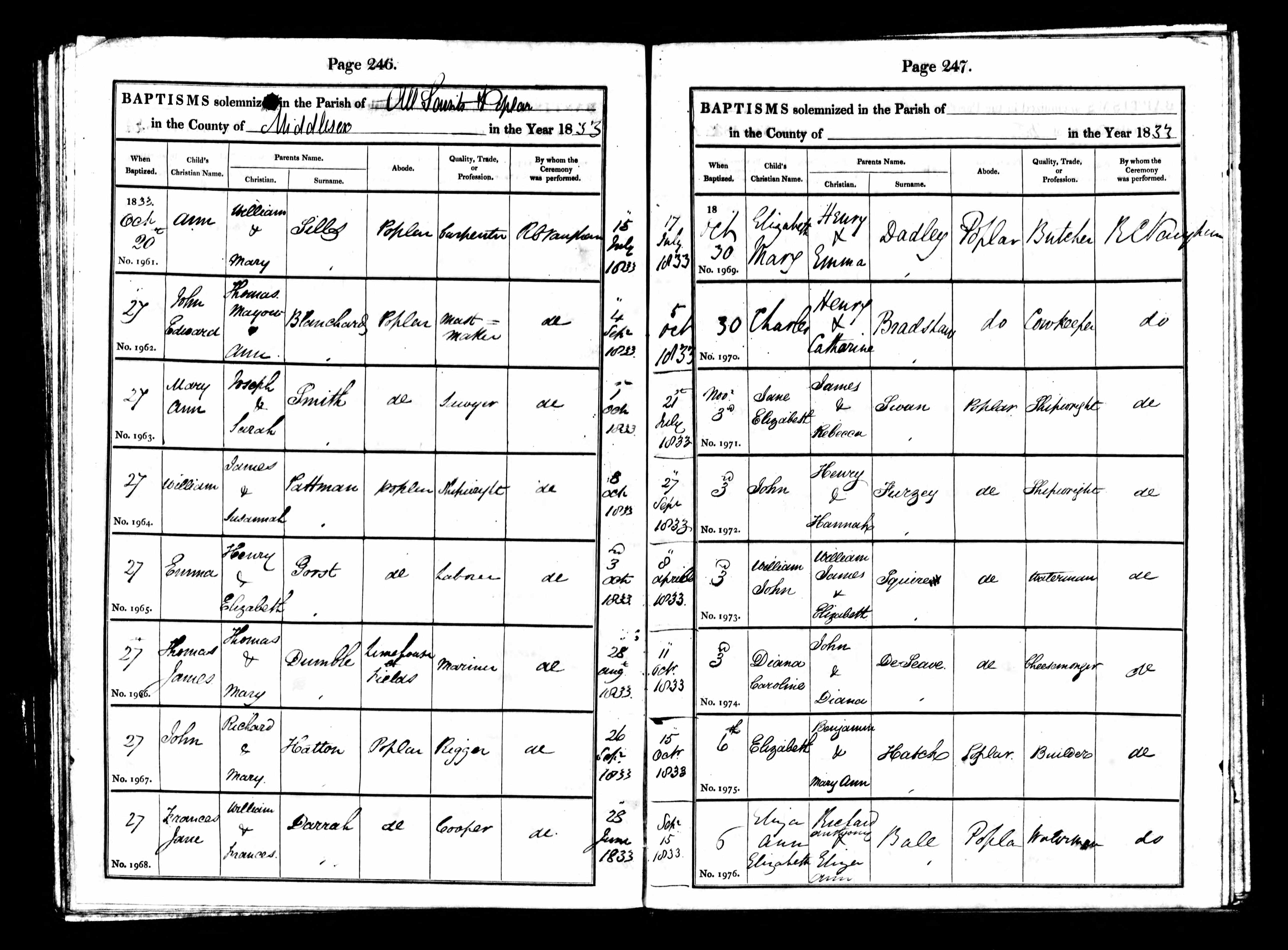 Cited from Parish Registers of All Saints, Poplar, Middlesex (Church of England)