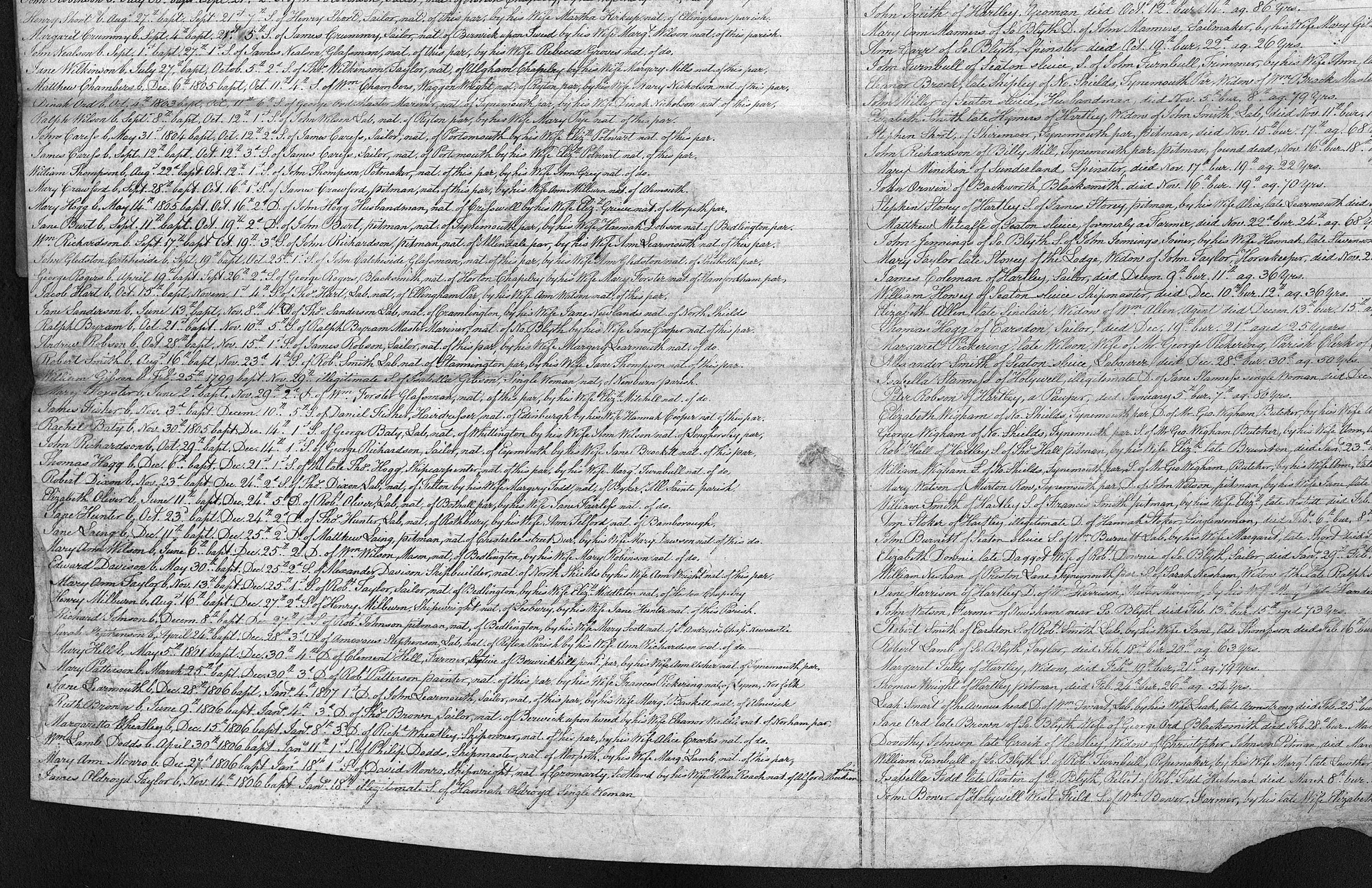 Wm Richardson, b. Sept 17th, bapt. Oct 19th, 3rd S of John Richardson, pitman, nat. of Allendale par, by his wife Ann Learmouth, naat of this par.