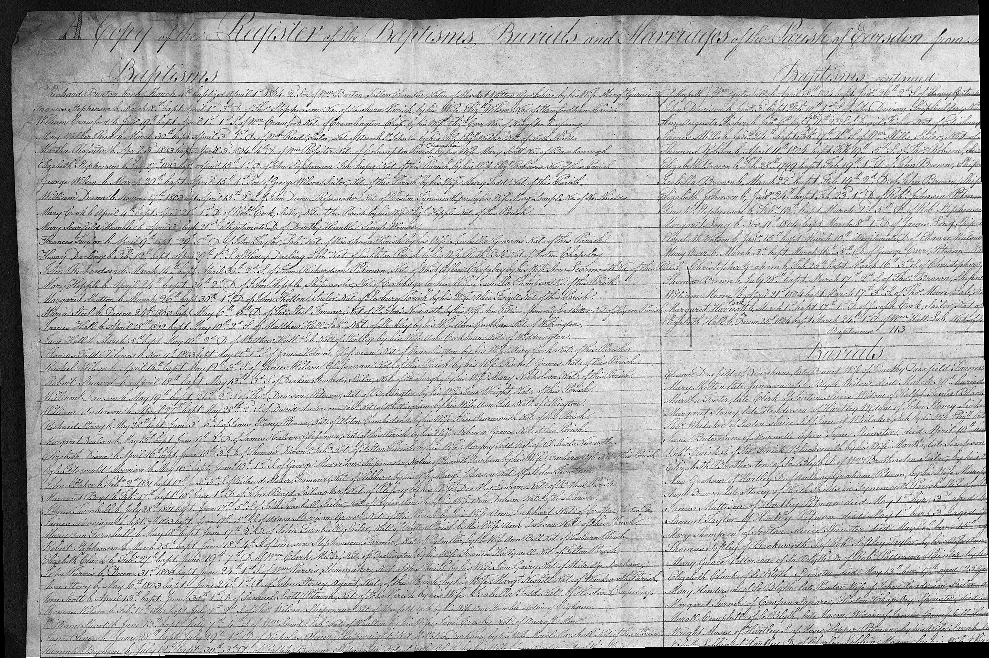 - John Richardson★ had occupation recorded as pitman on 30 Apr, 1804
