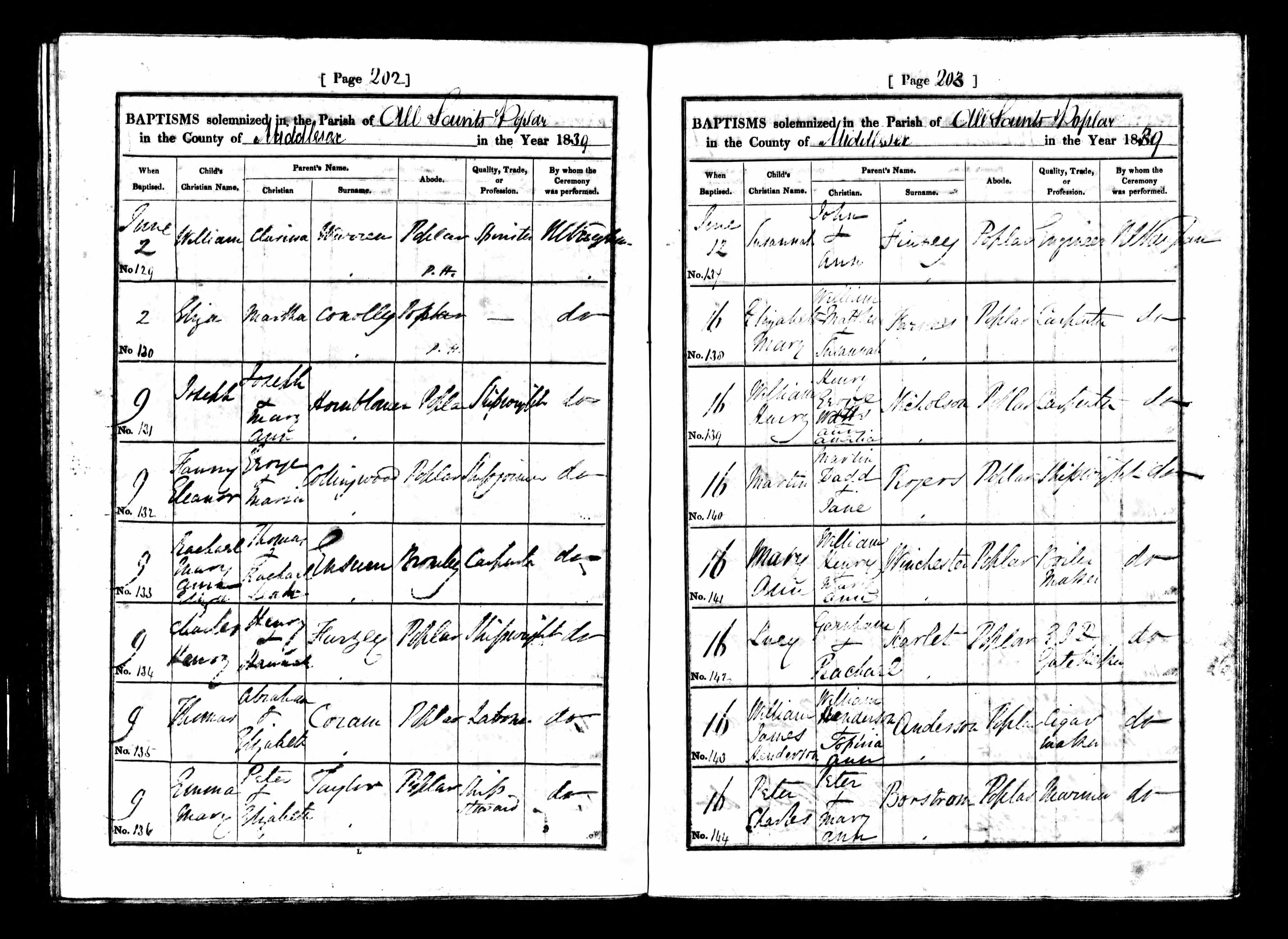 Cited from Parish Registers of All Saints, Poplar, Middlesex (Church of England)