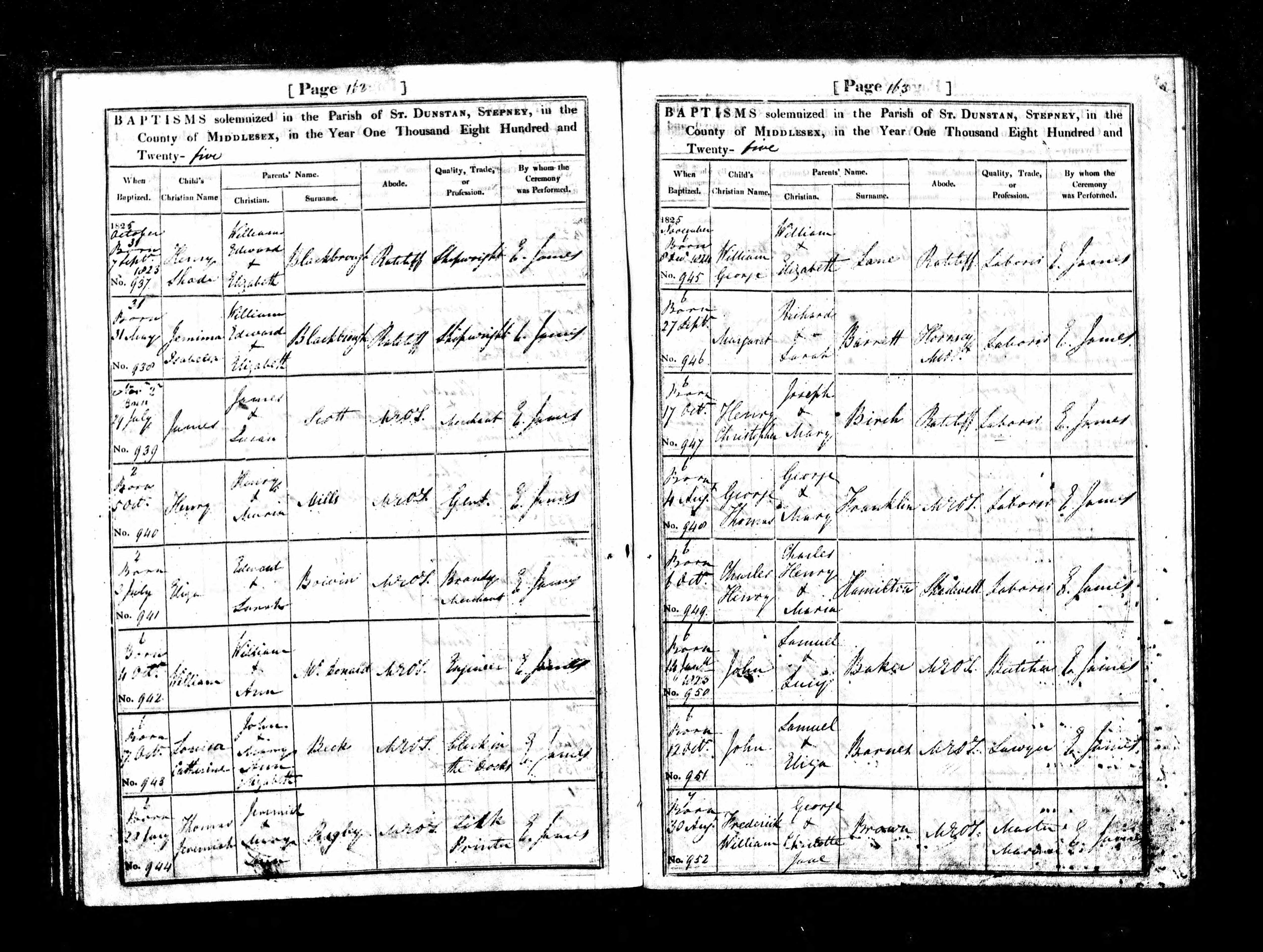 - William Edward Blackbrough★ was resident on 31 Oct, 1825 in Ratcliff, Middlesex, England