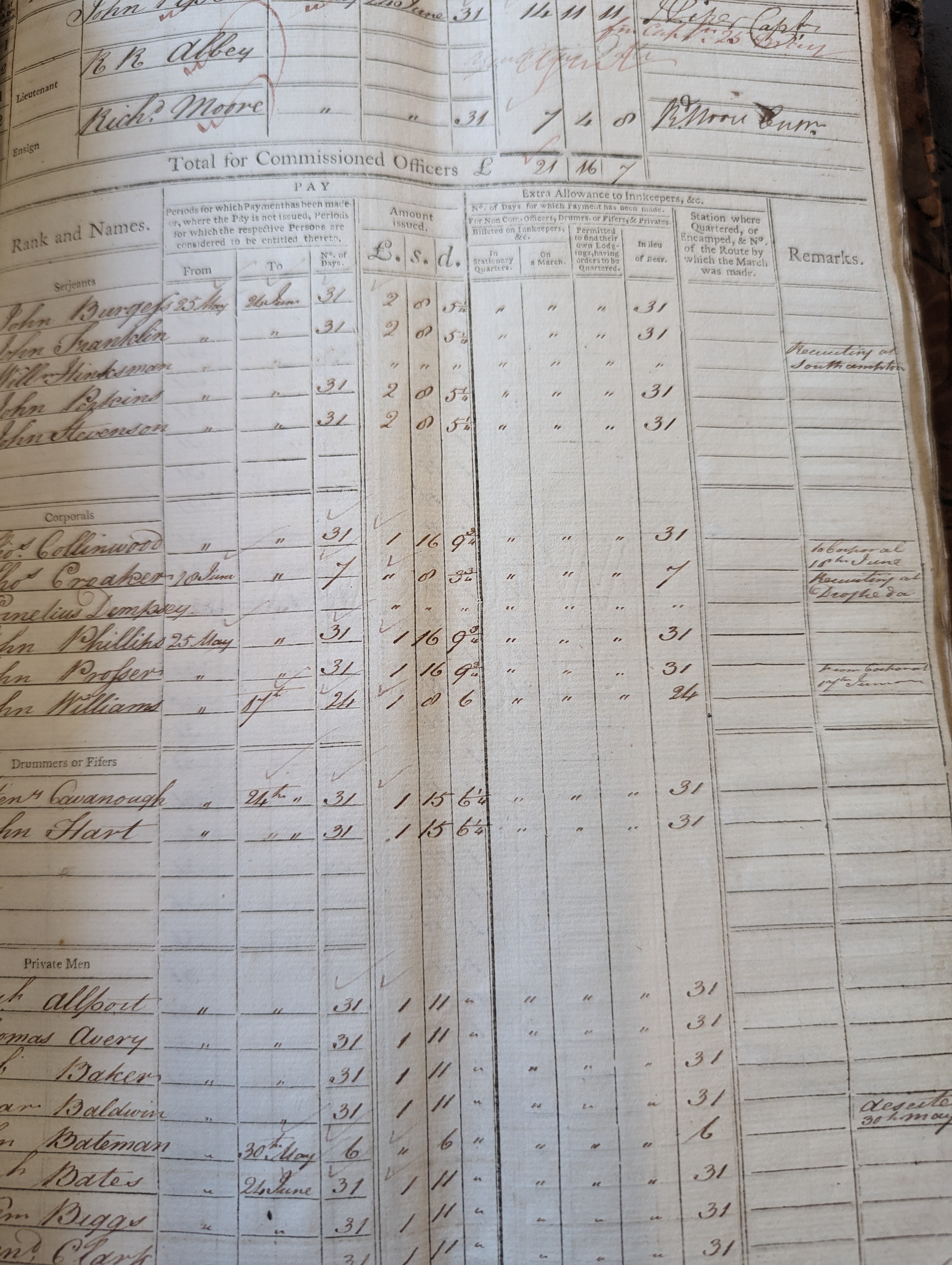 William Hinksman, sergeant in Captain Piper’s company. Remarks: “recruiting at Southampton”