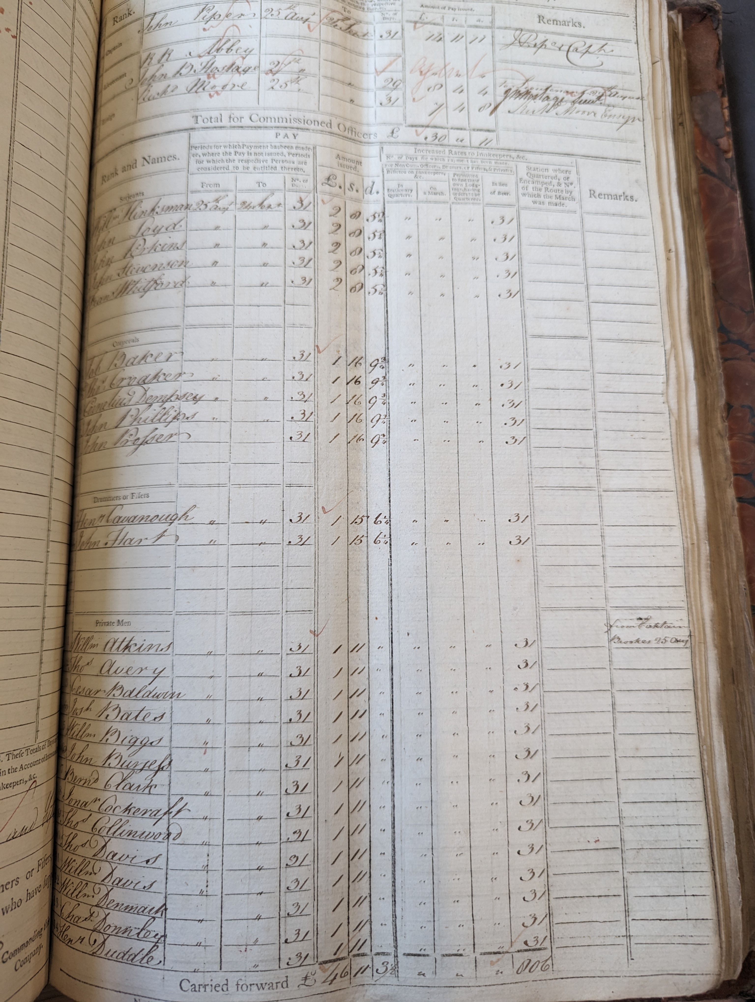 Cited from General Muster Books and Pay Lists, WO 12/2201, 4th Foot 1st Battalion, 1803 (Commissary General of Musters Office and successors)