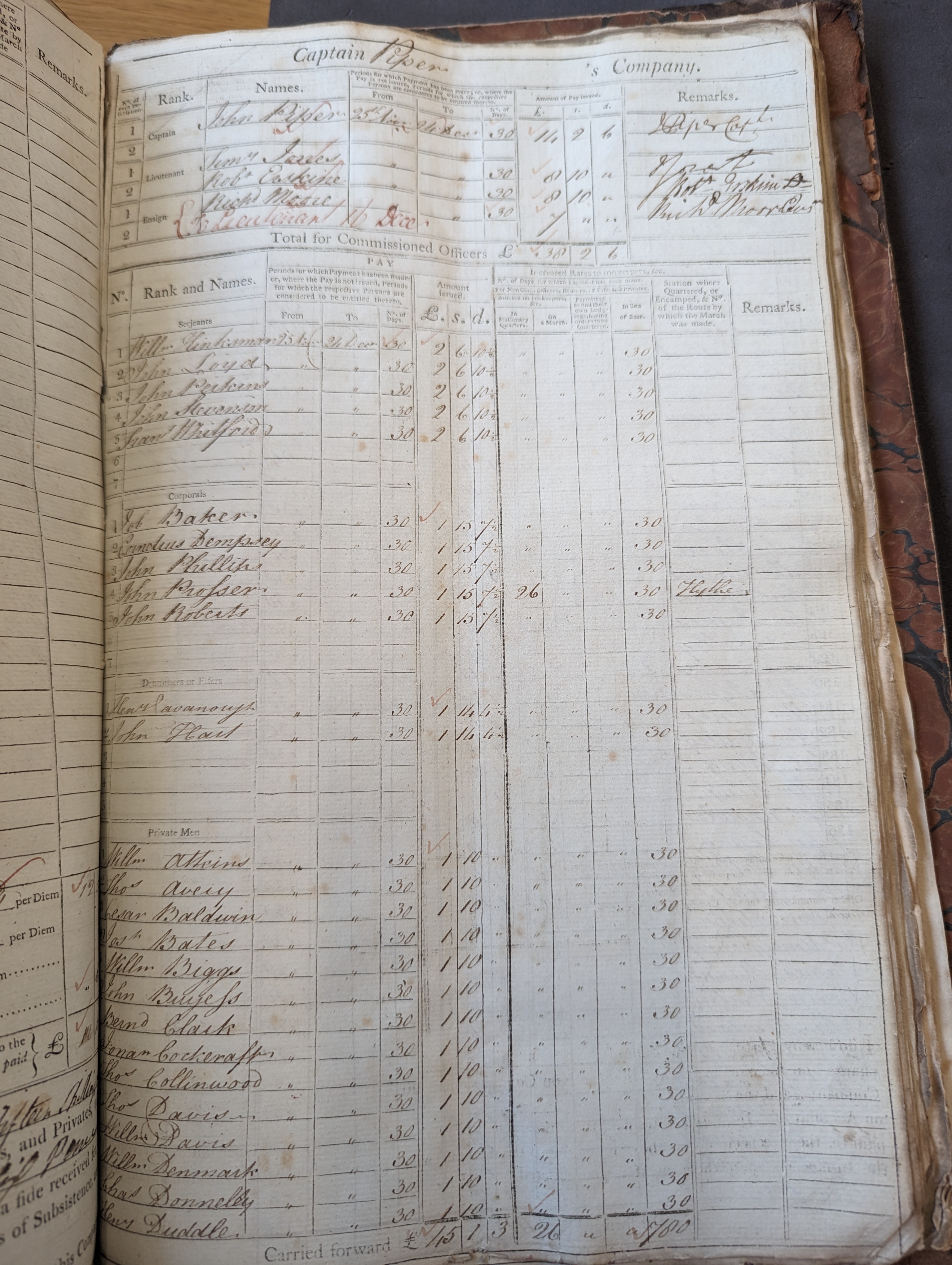 Willm Hinksman, sergeant in Captain Piper’s company, paid 25 Nov to 24 Dec, 30 days.