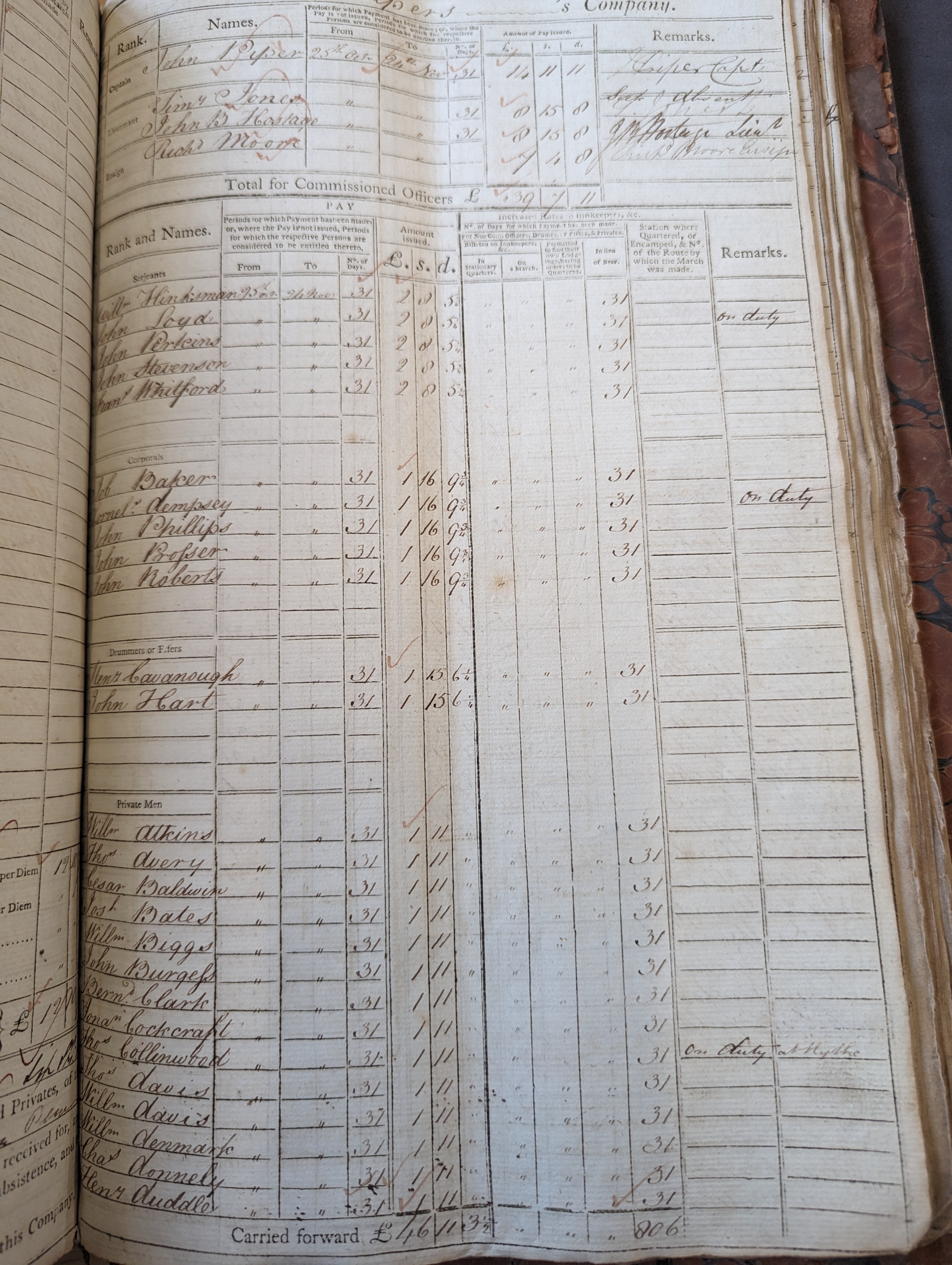 Cited from General Muster Books and Pay Lists, WO 12/2201, 4th Foot 1st Battalion, 1803 (Commissary General of Musters Office and successors)