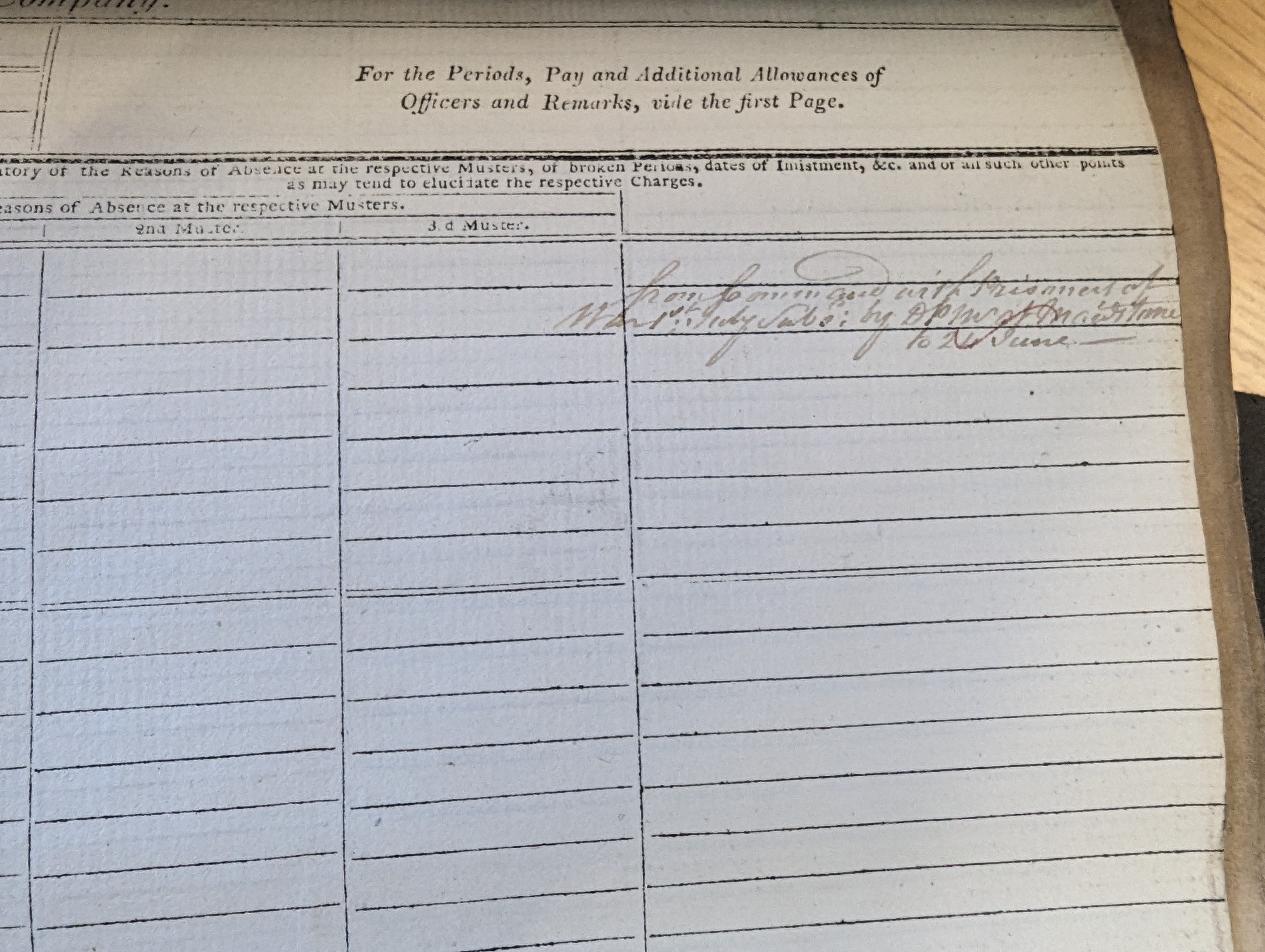 MusterRollFor4thFoot1stBatt1808Sep_WO12_2204_WilliamHinksmanRemarks