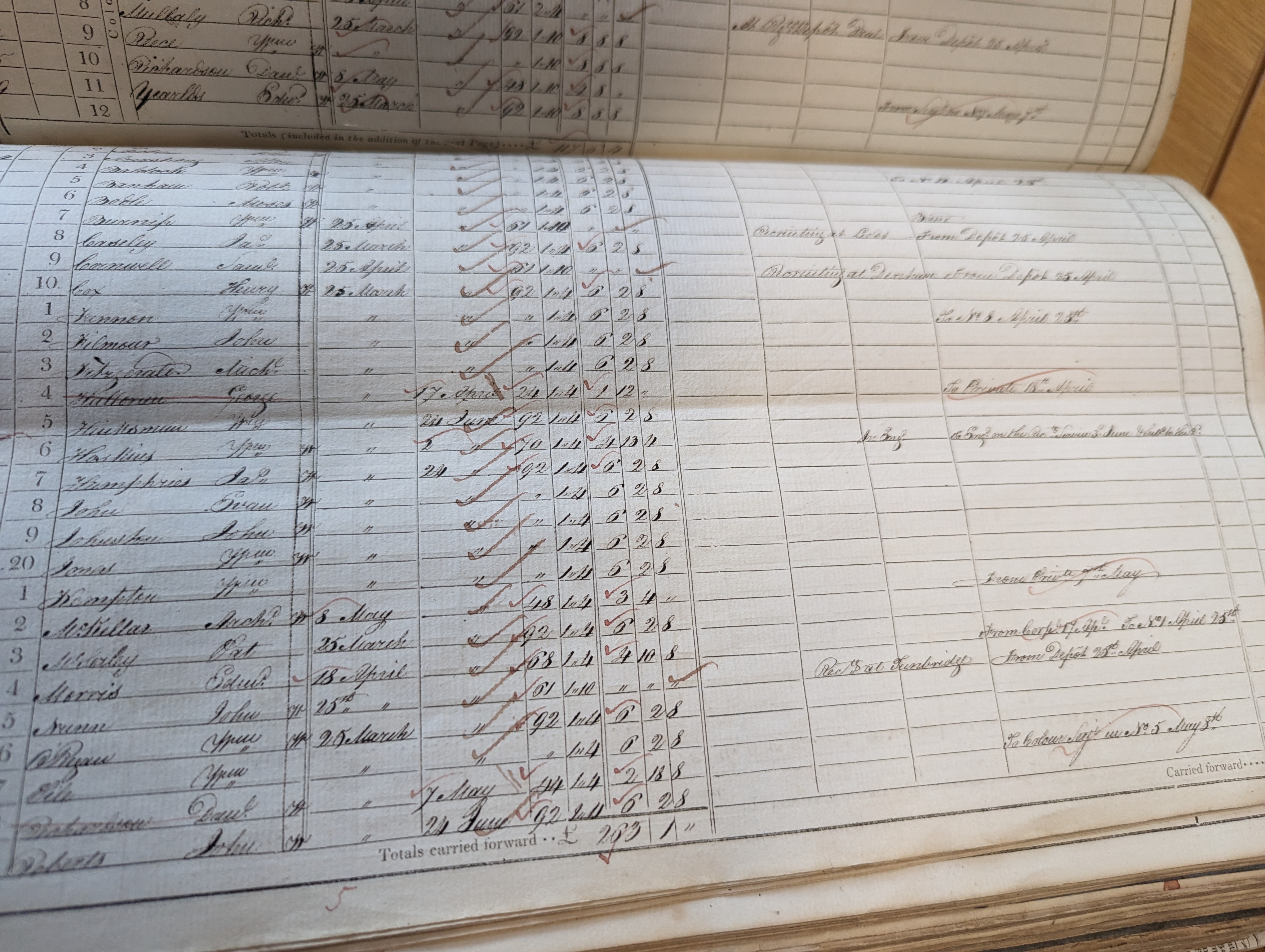 Cited from General Muster Books and Pay Lists, WO 12/2208, 4th Foot 1st Battalion, 1817-1819 (Commissary General of Musters Office and successors)