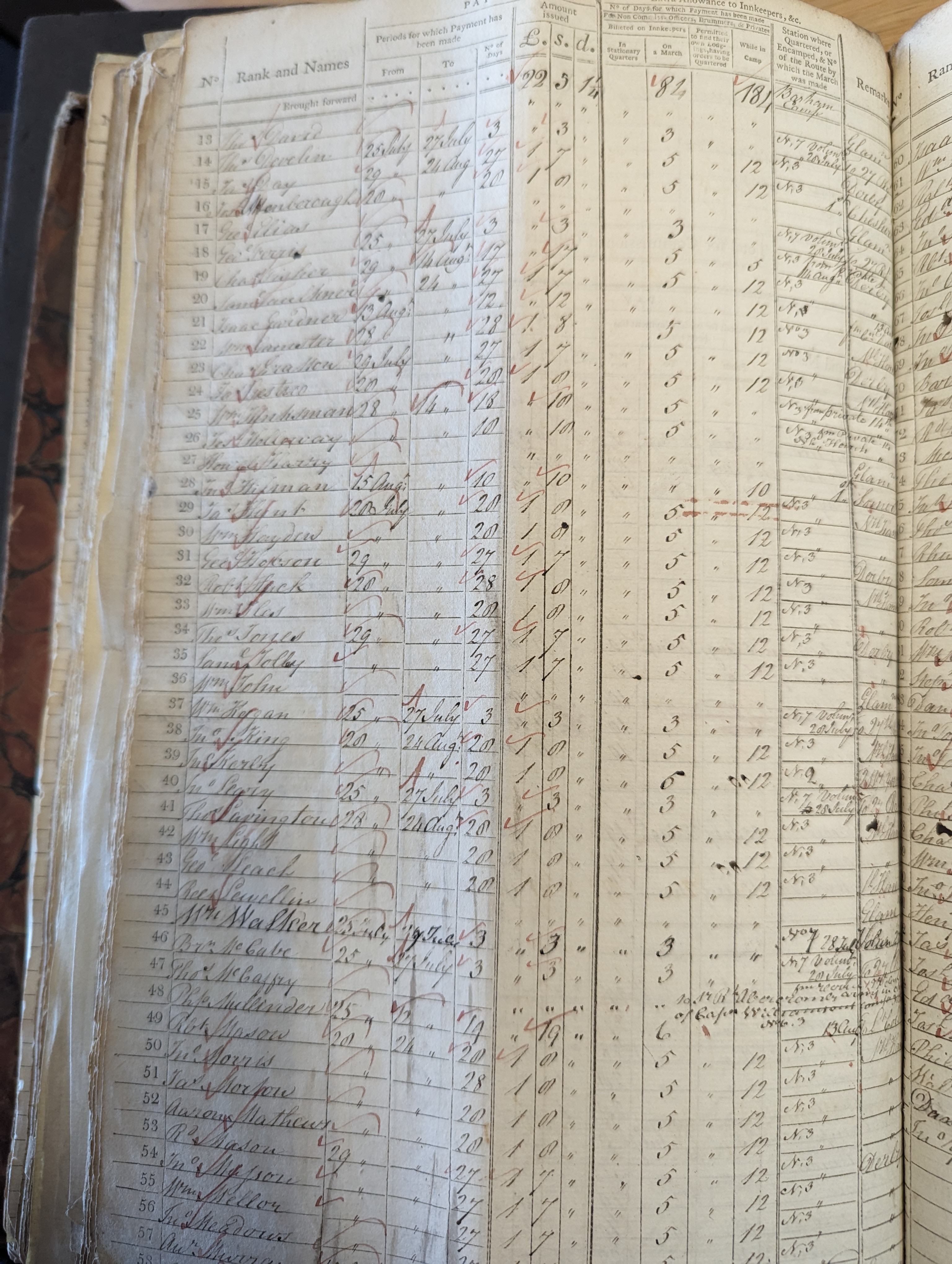 - William Hinksman★ was recorded at muster for the 1st battalion, 4th Foot on 24 Aug, 1799 at Barham Camp, Barham, Kent, England