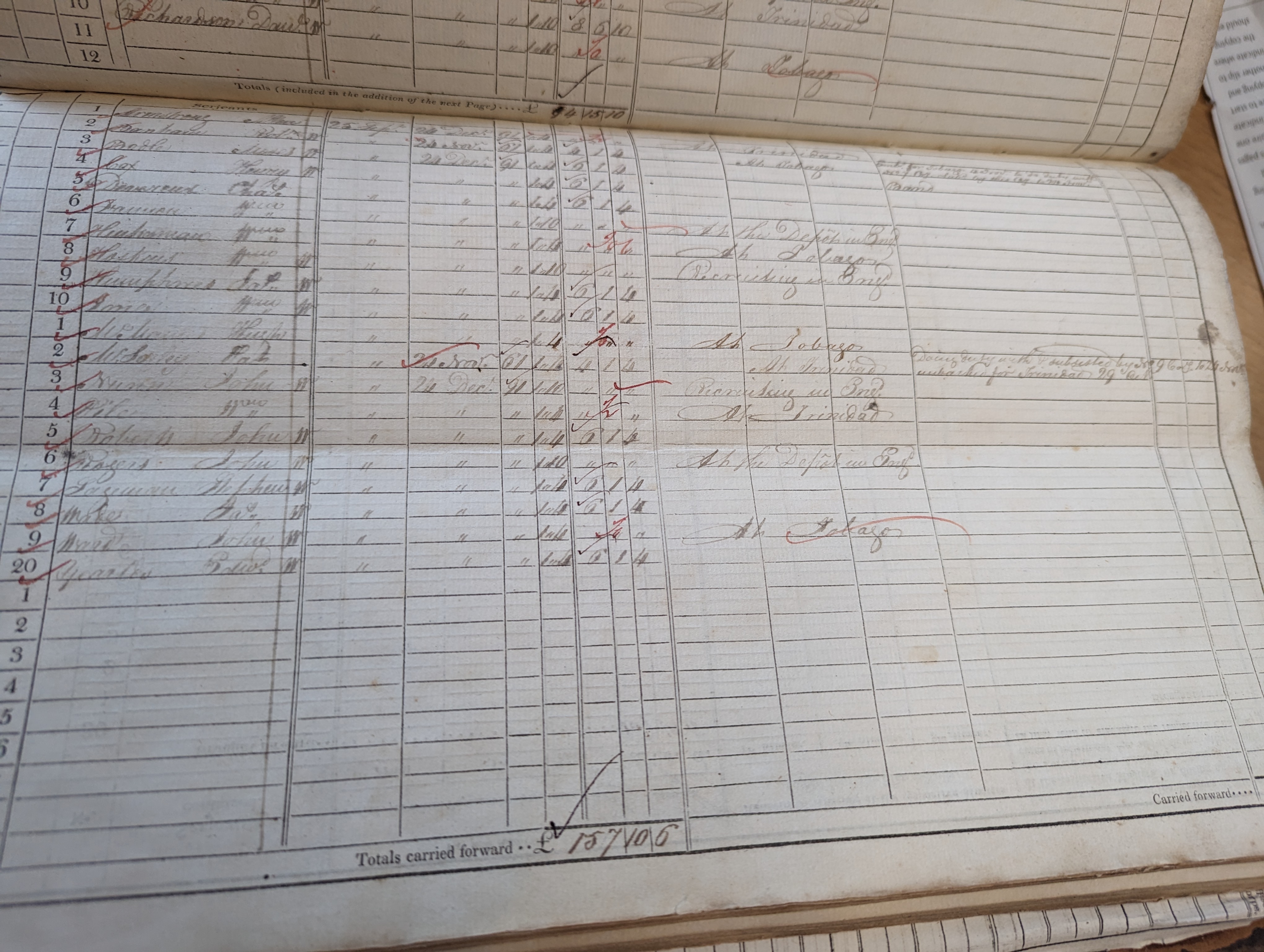 William Hinksman, sergeant. Absent from all three musters with comment: “at Tobago”