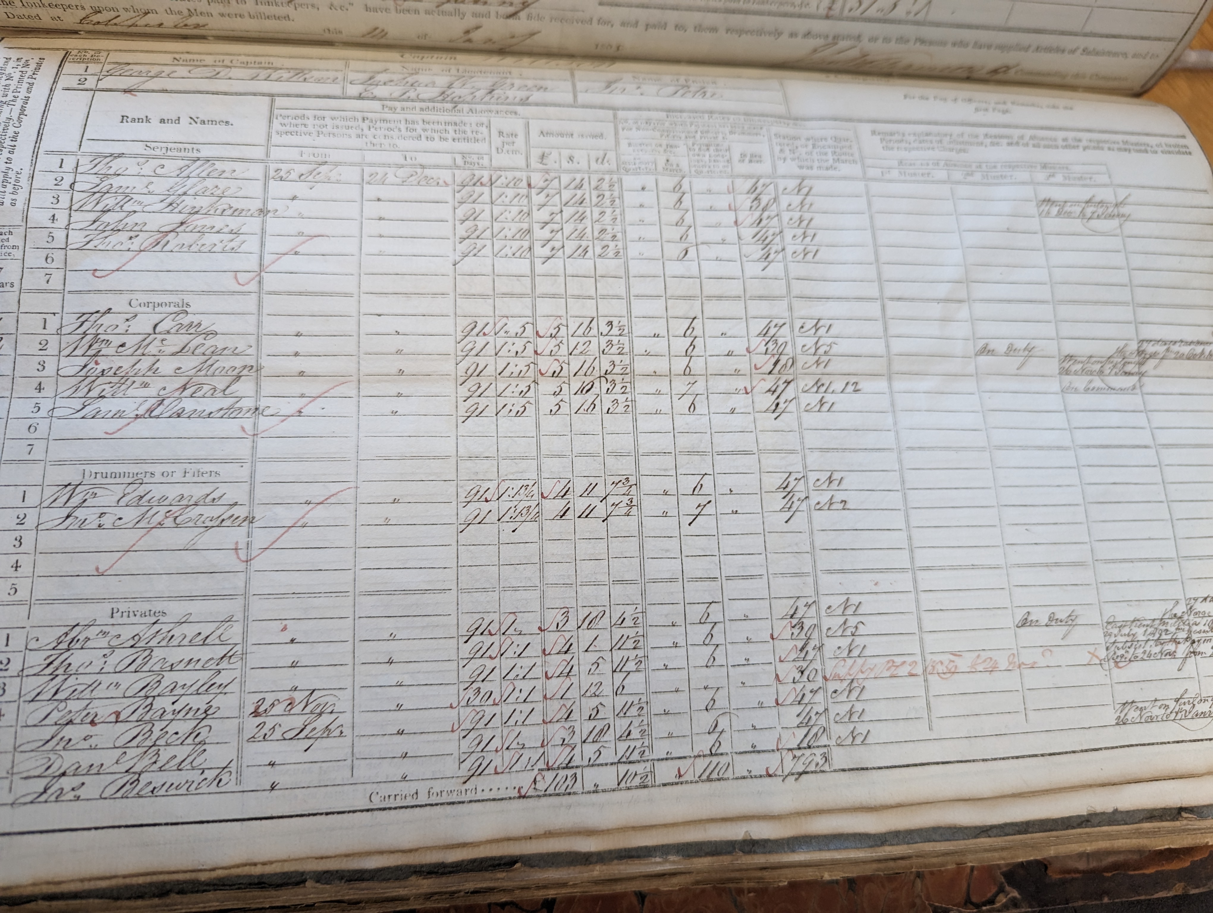 William Hinksman, sergeant in Captain Wilson’s company, paid 25 Sep to 24 Dec, 92 days. No remarks.