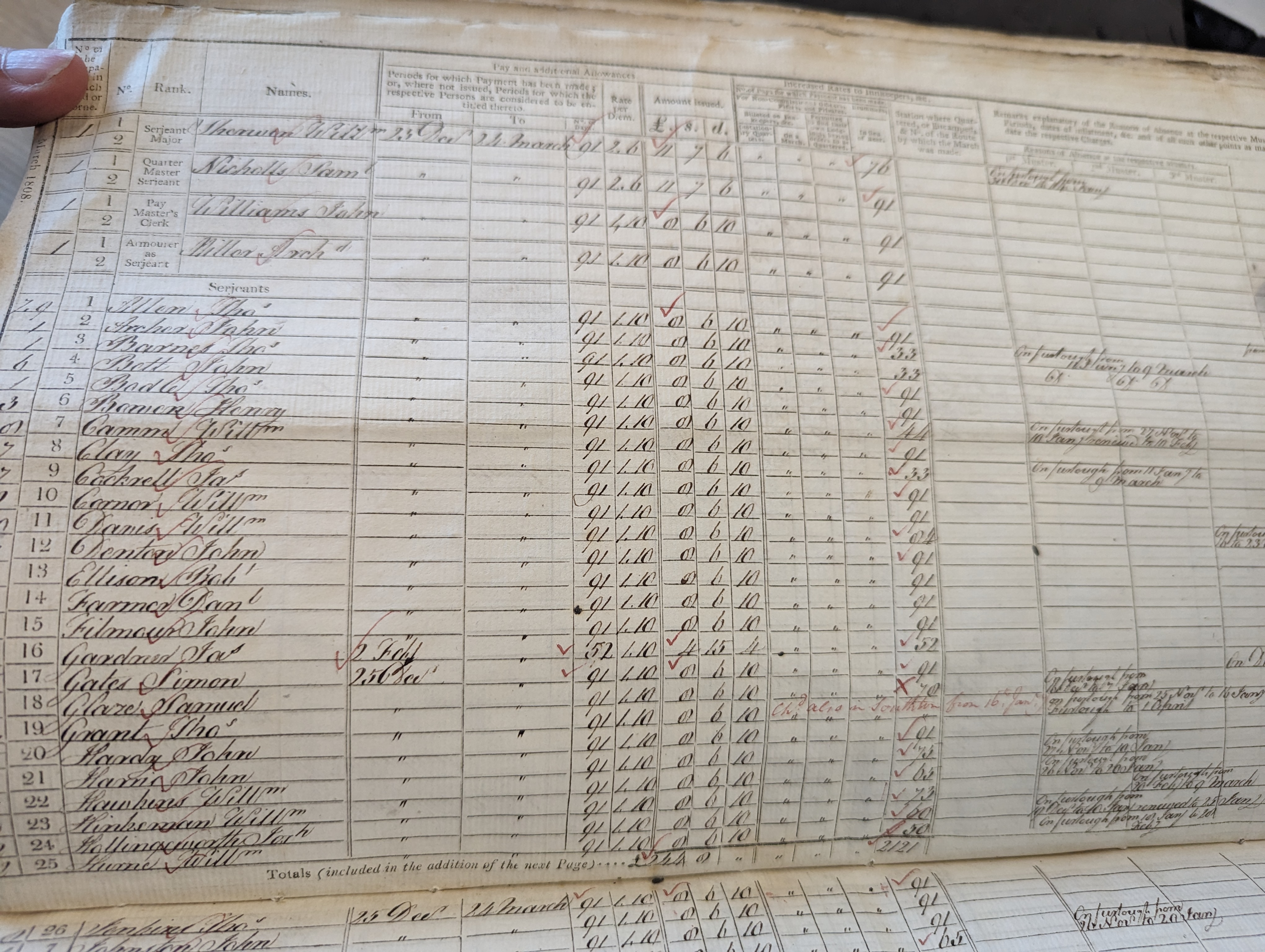 MusterRollFor4thFoot1stBatt1808Mar_WO12_2204_WilliamHinksman