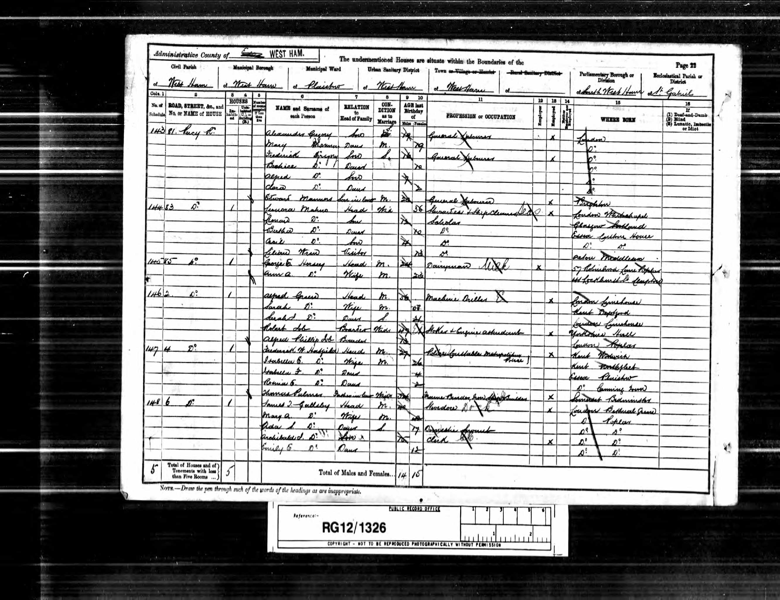 Class RG12, Piece 1326, Folio 117, Page 22, Schedule 146