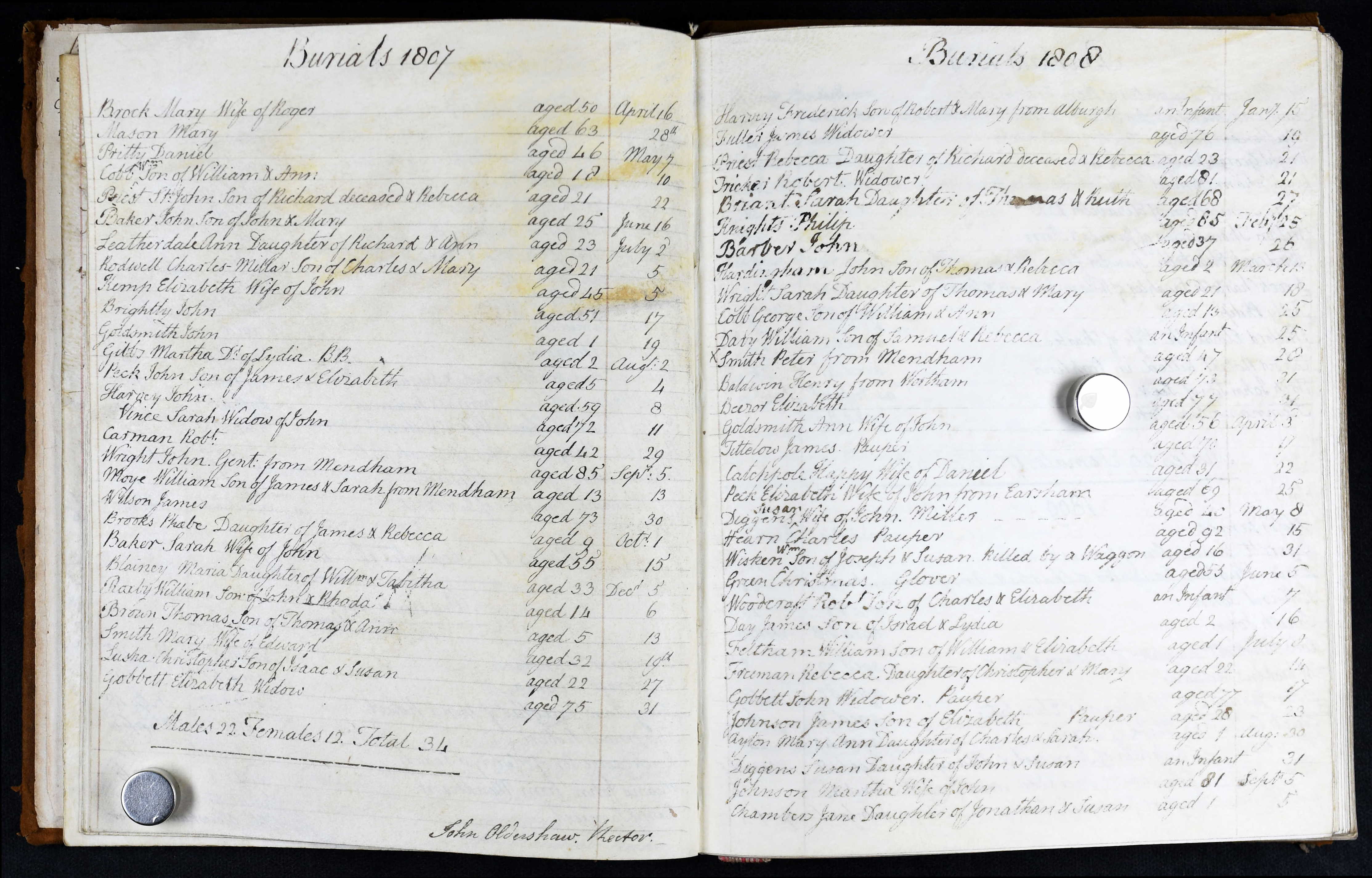 Parish Registers of St. Mary, Redenhall with Harleston, Norfolk; Burial entry for Phoebe Brooks, 1 Oct 1807.