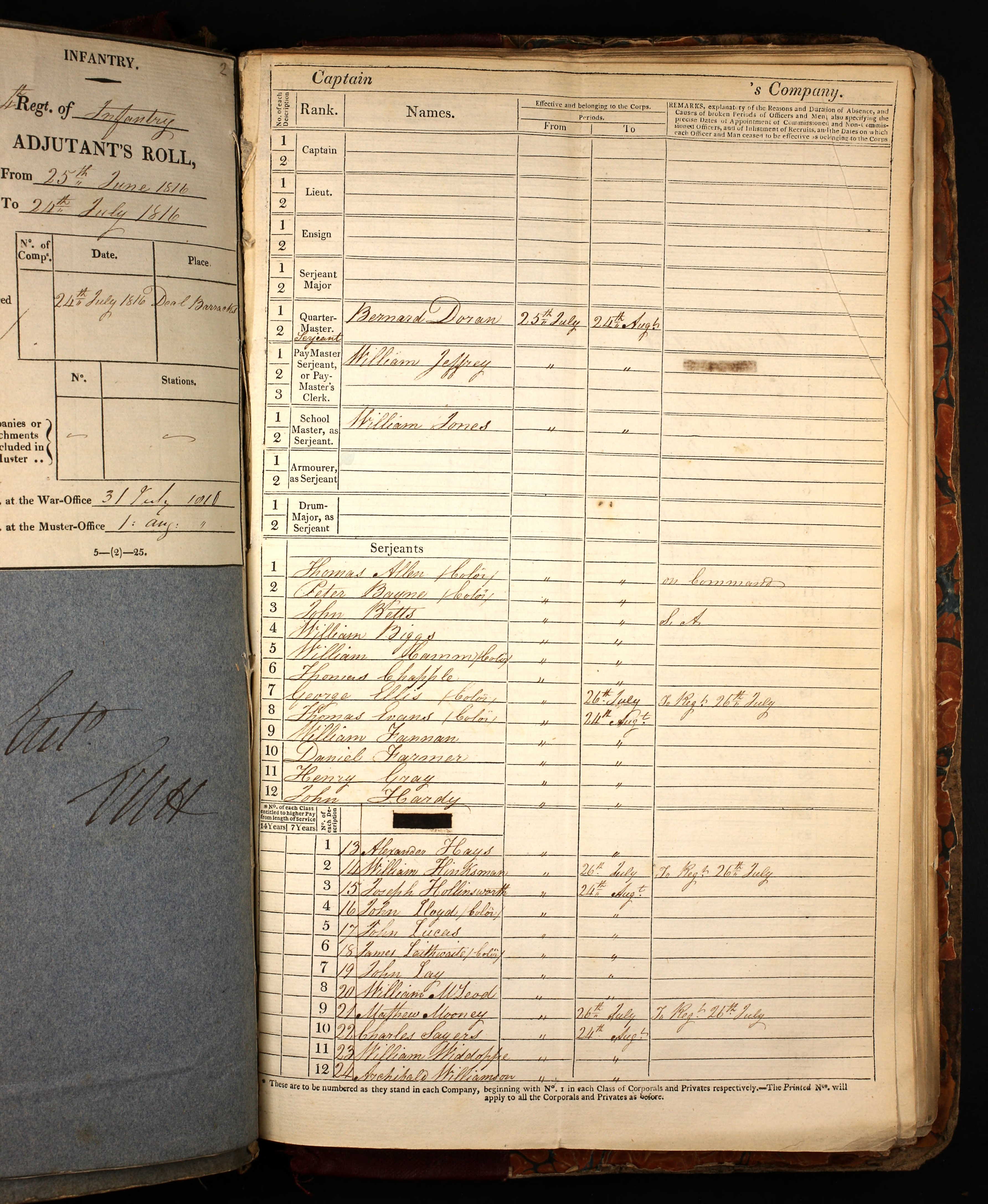 25 Jul 1816 to 24 Aug 1816, Infantry at home, Serjeants, William Hinksman, Digital image 707